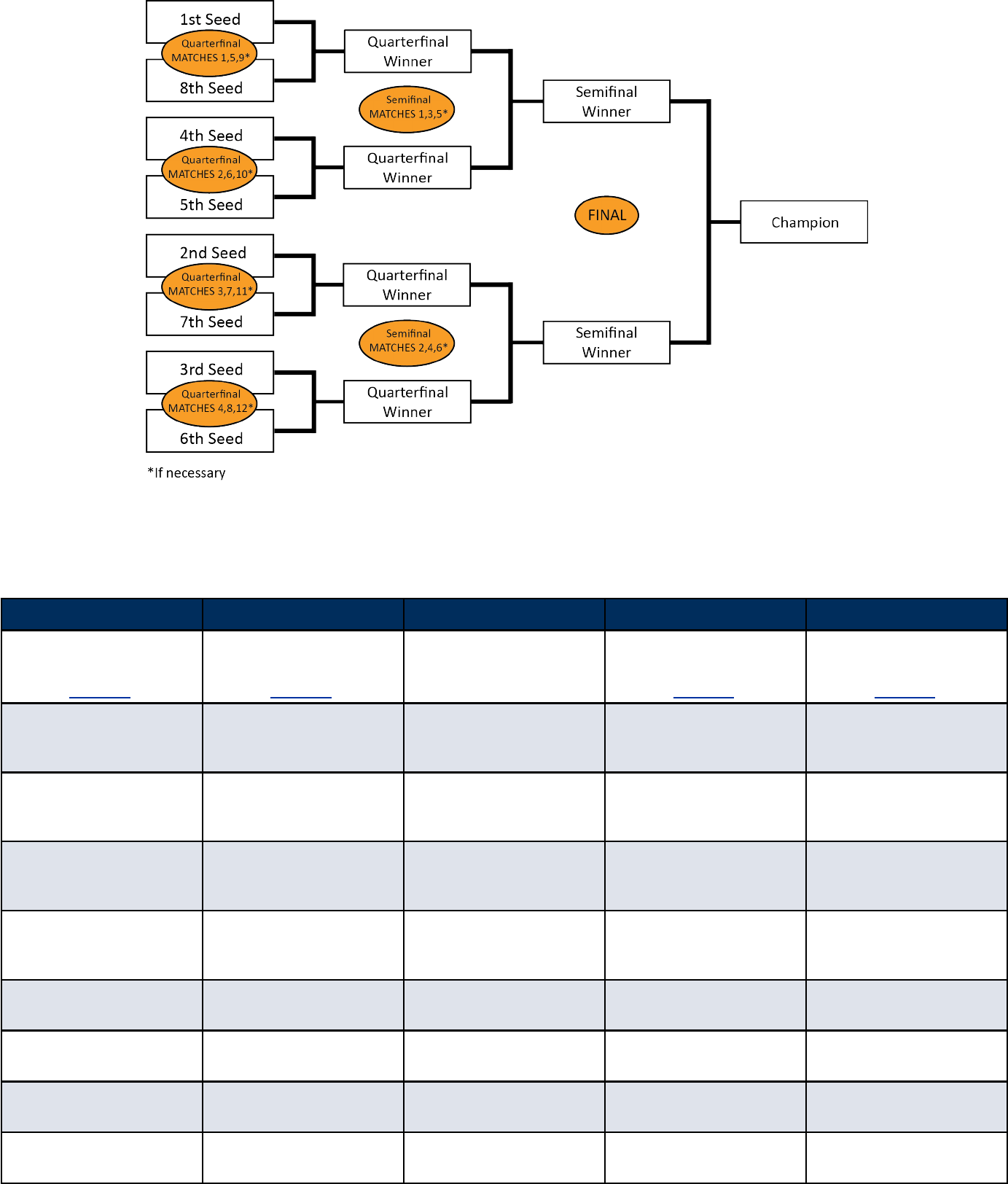 TIMEOUT a period of up to six (6) minutes between MATCHES used to pause Playoff MATCH