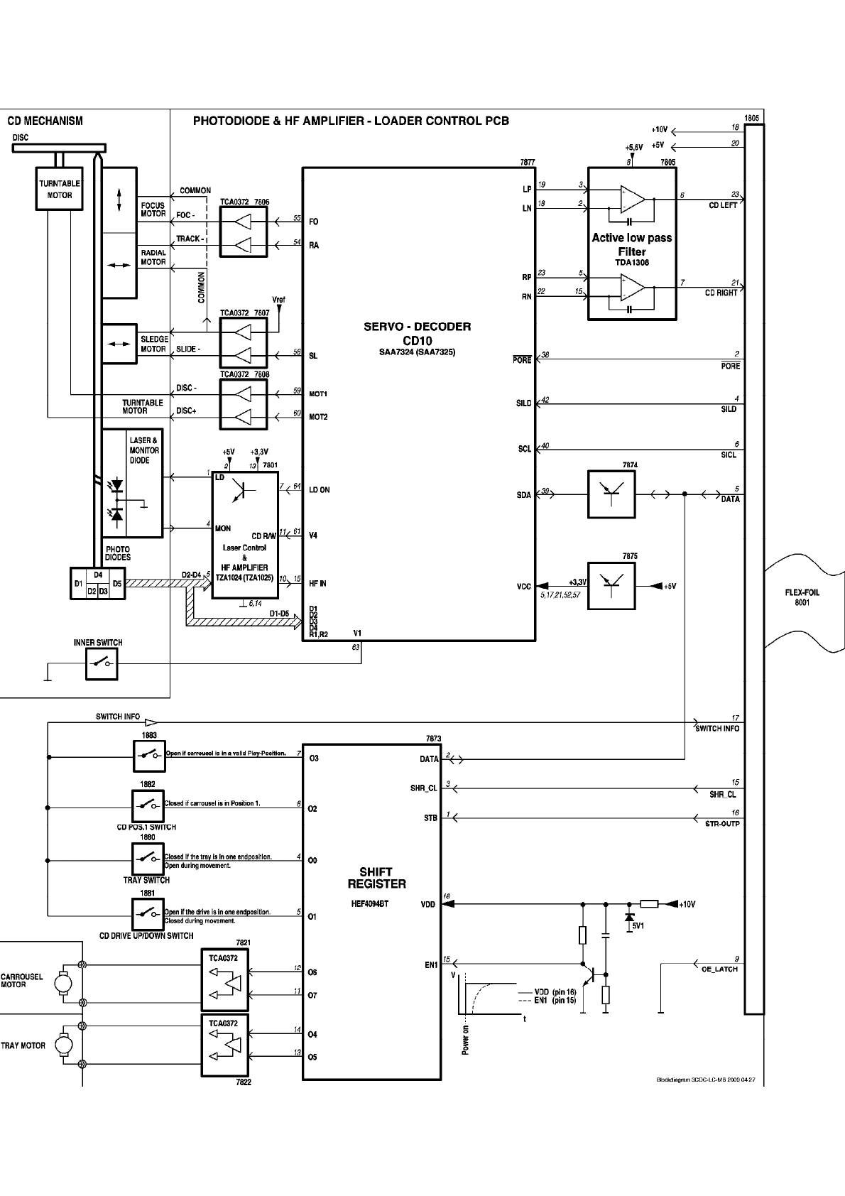 This circuit switches on the +CD supply (derived from +12A) to CD servo control,