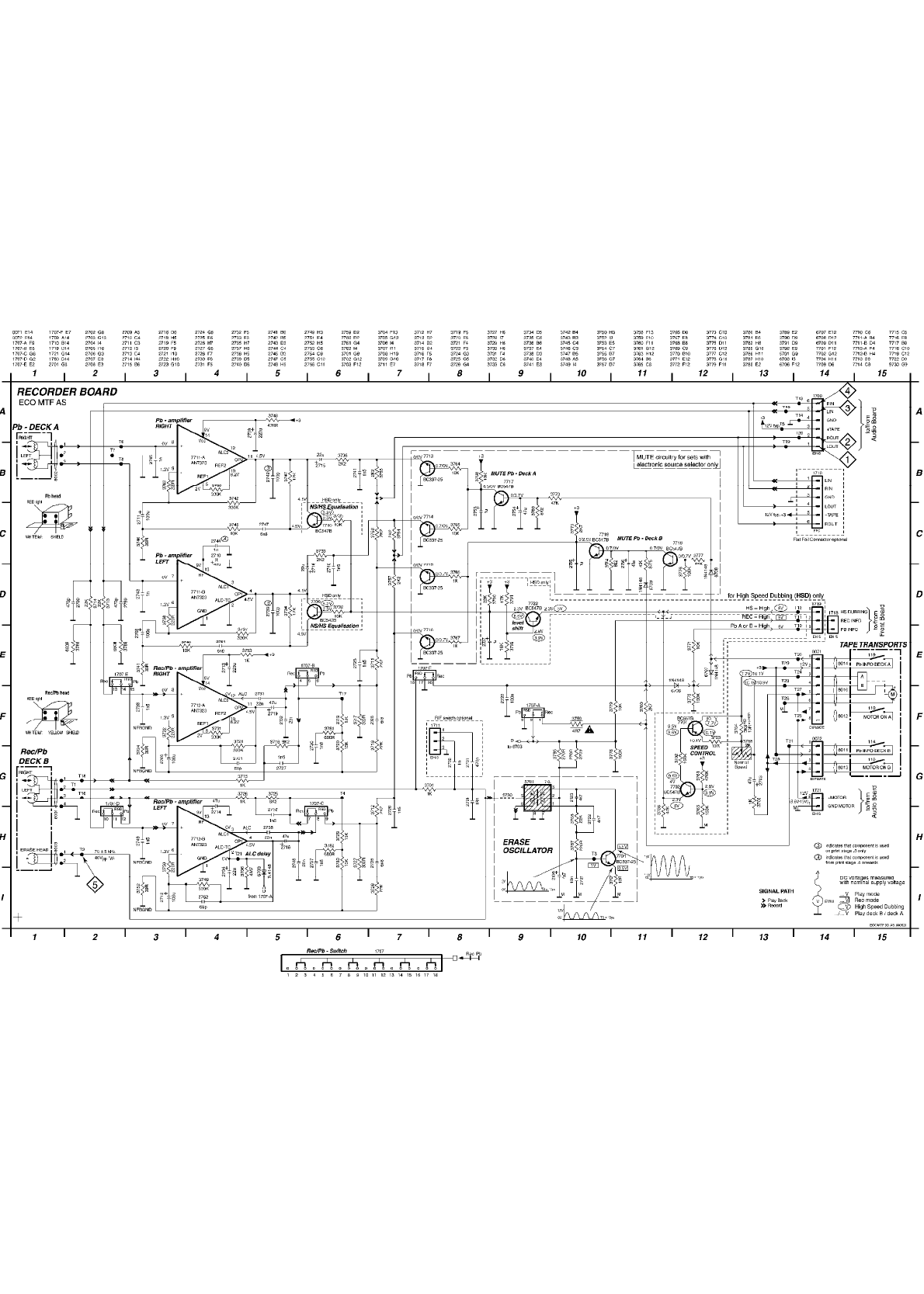 amplifier (Tr 7503 and 7504). The source signal is then split into recording path