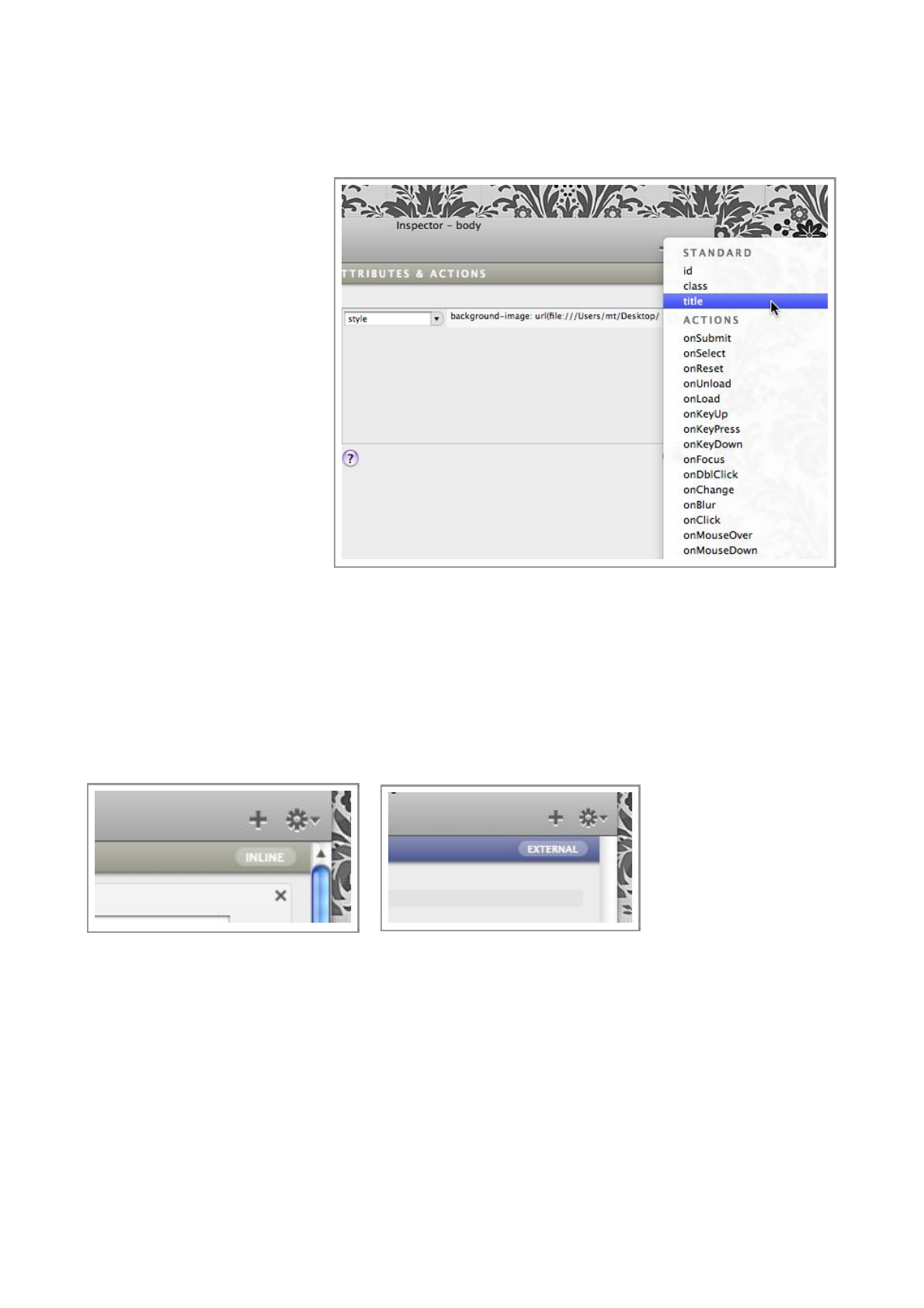 The Actions palette is used to attach Javascript