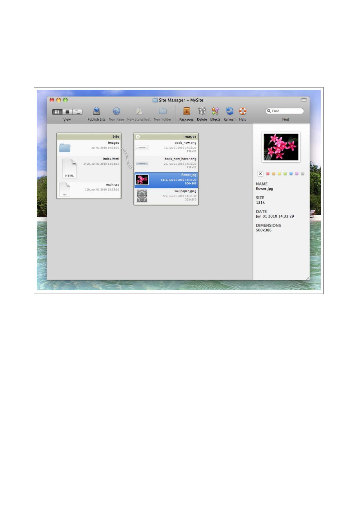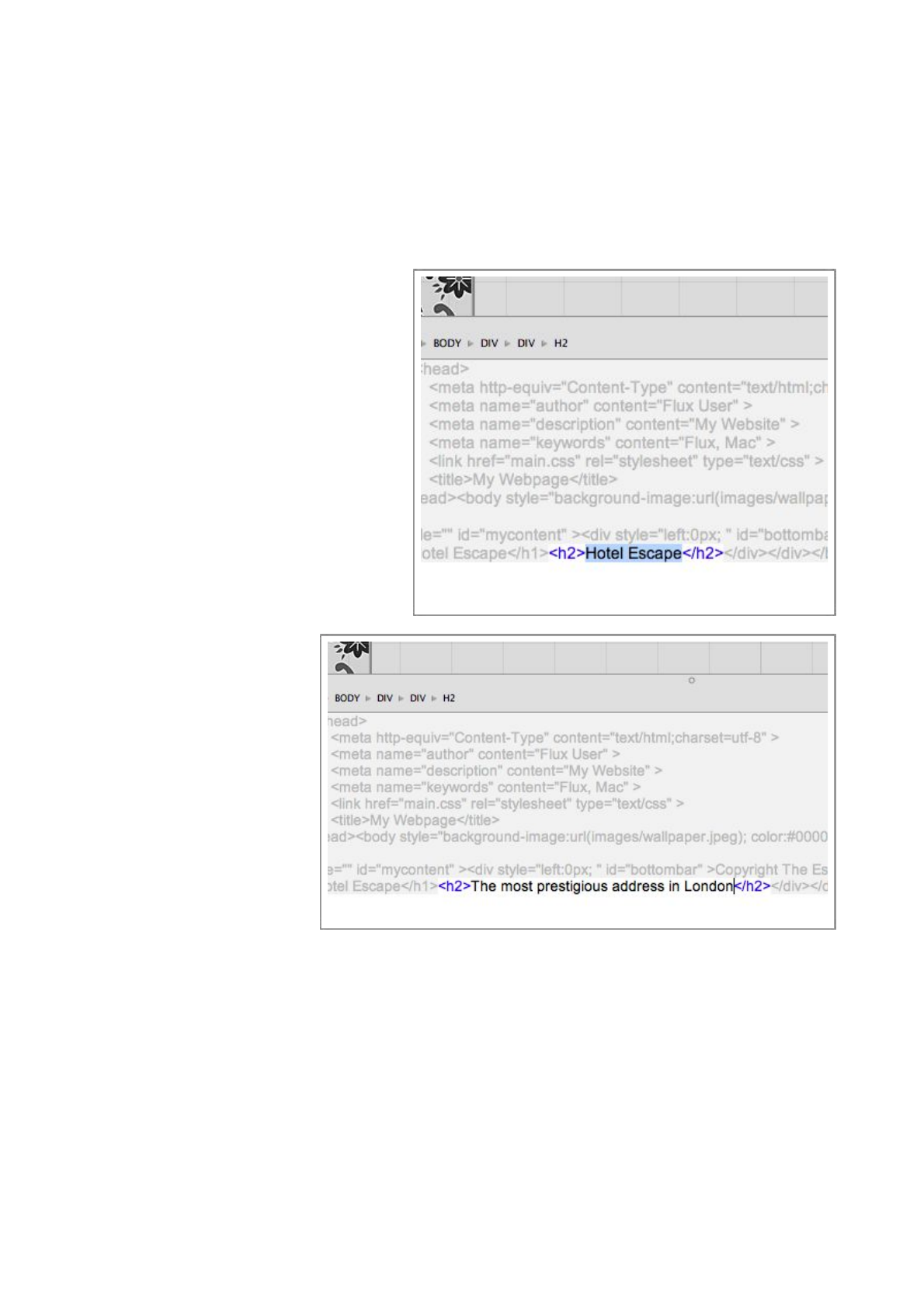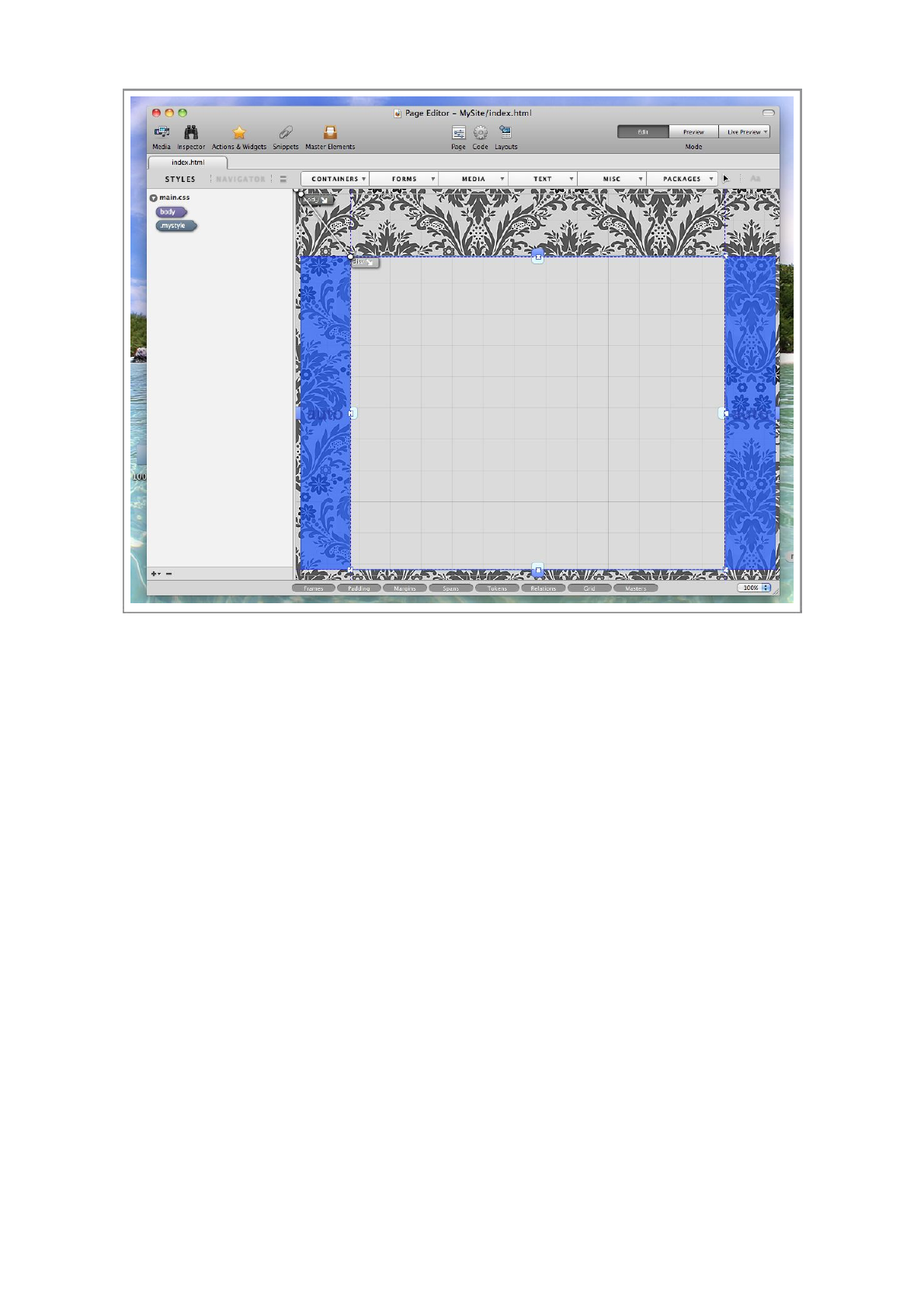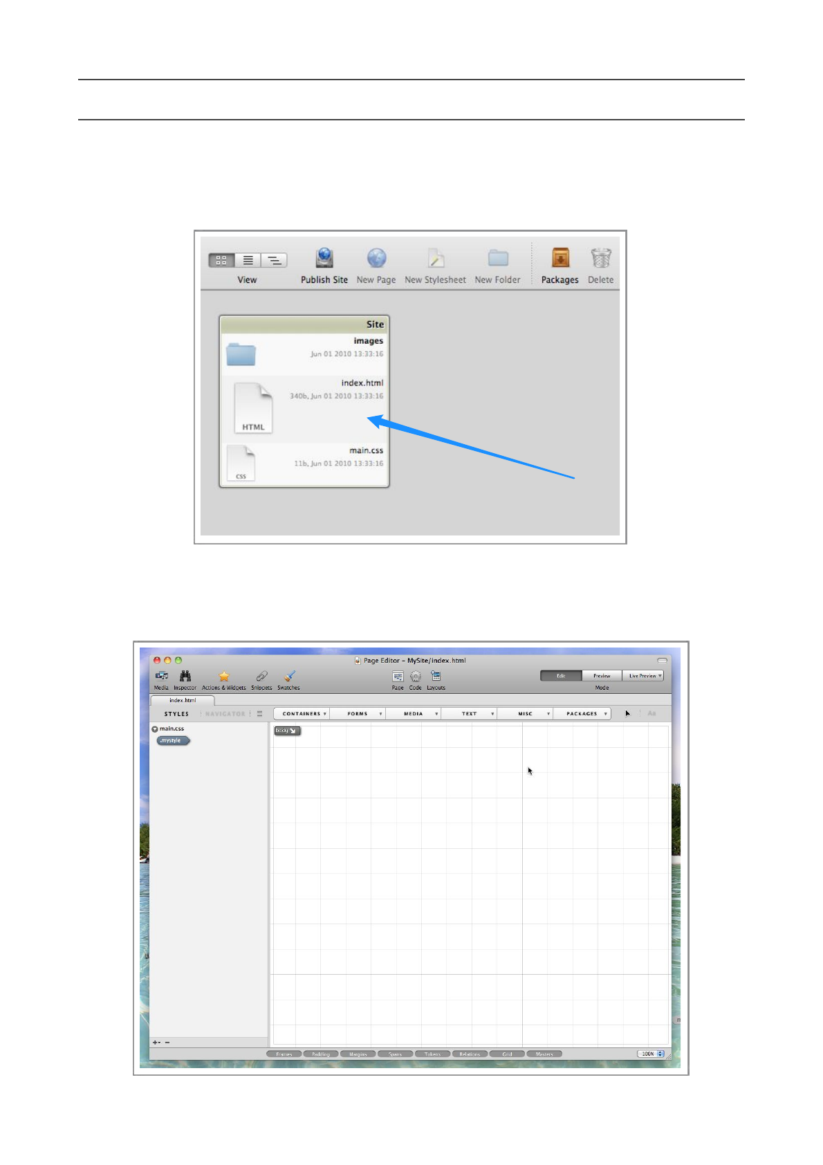 Double-click the index.html file, this will open the file in Flux’s Page Designer