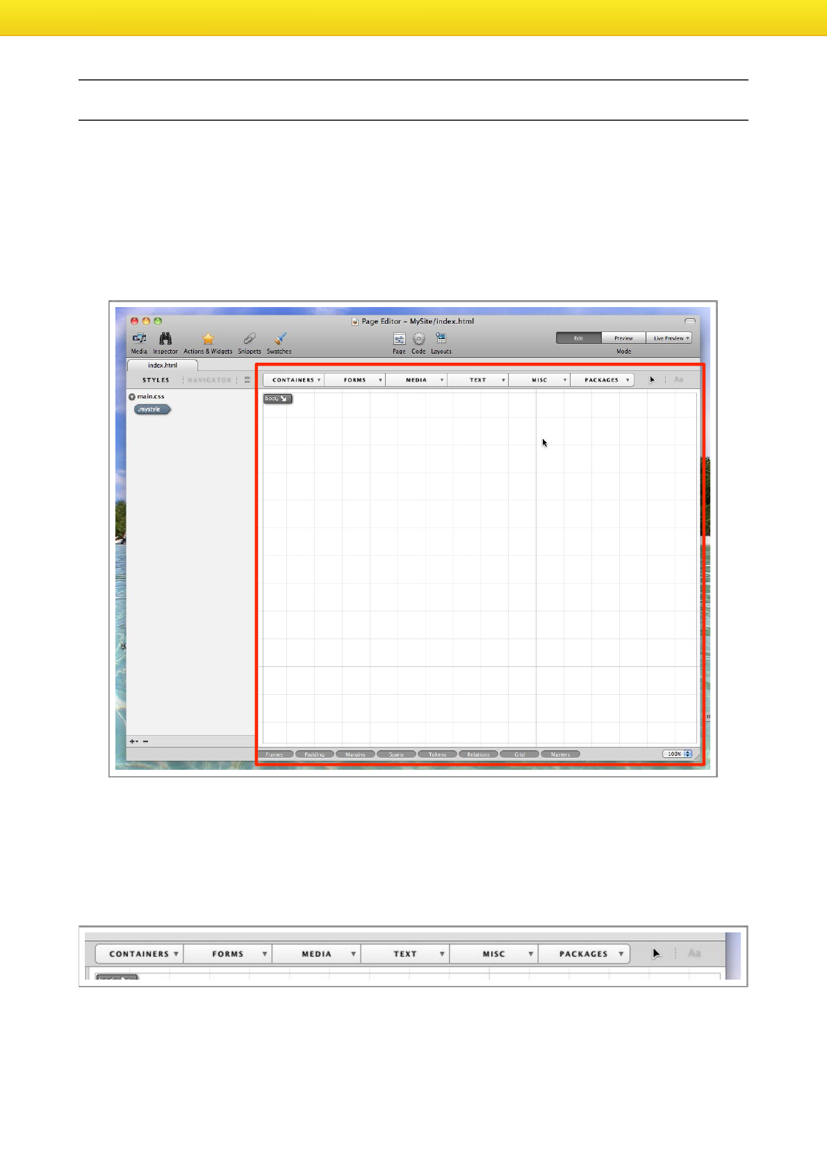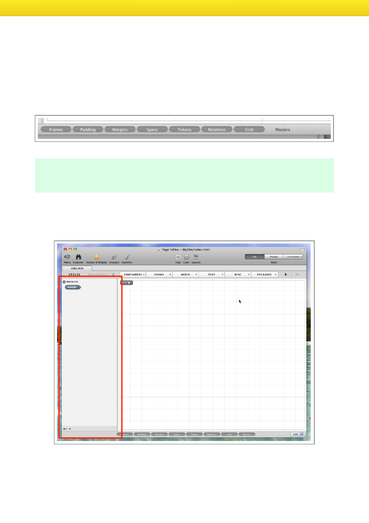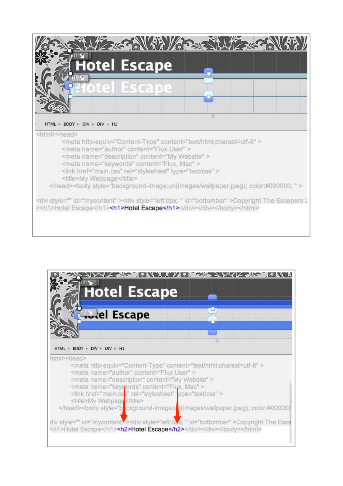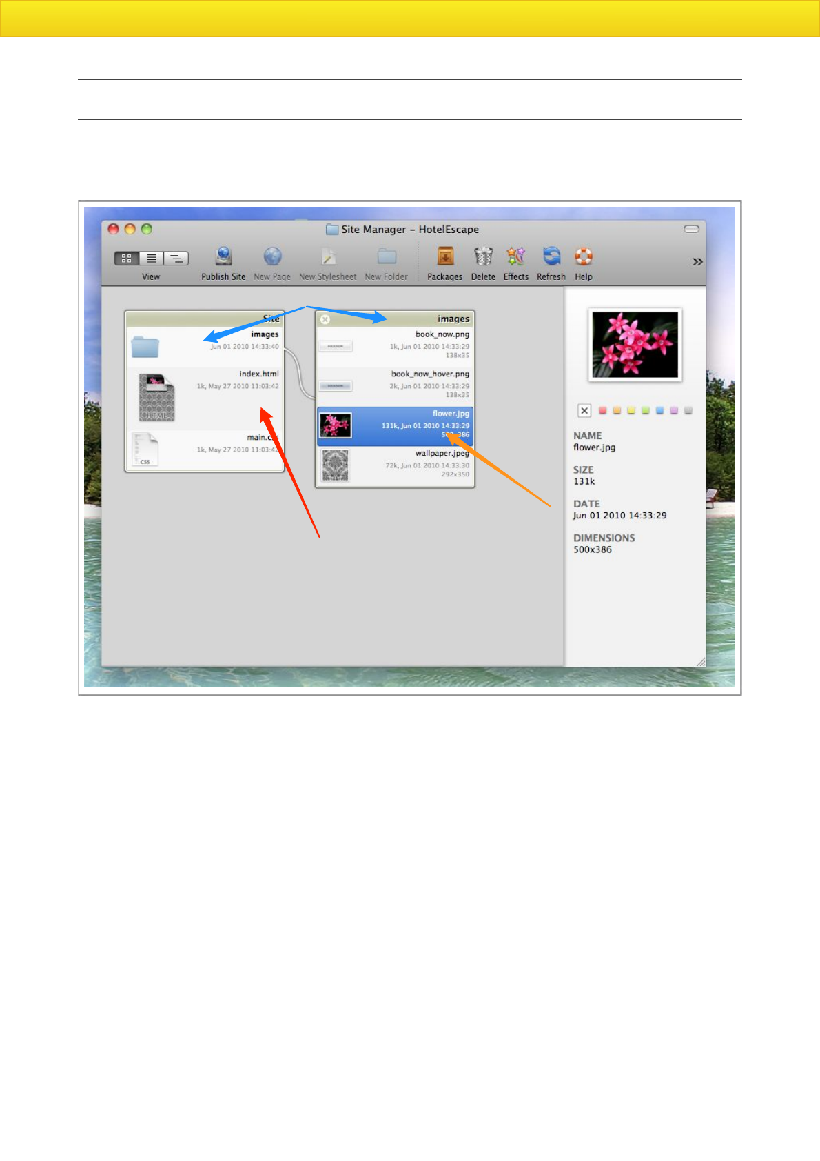 Double-click the index.html file, this will open the file in Flux’s Page Designer