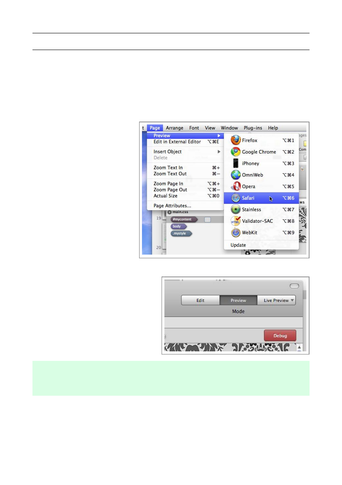 Switch to Preview Mode to examine your page, if you