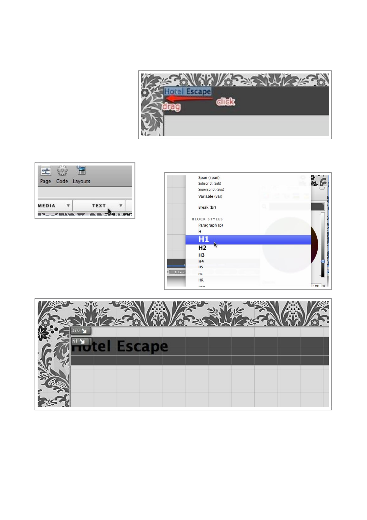 Now, open the ‘index.html’ page, and switch into Te xt