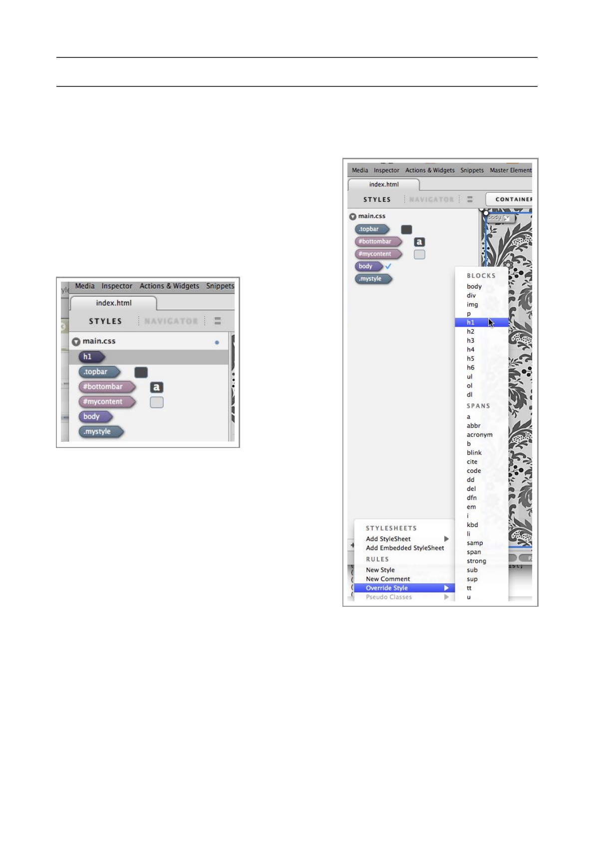 your page, and the CSS Rules within them.