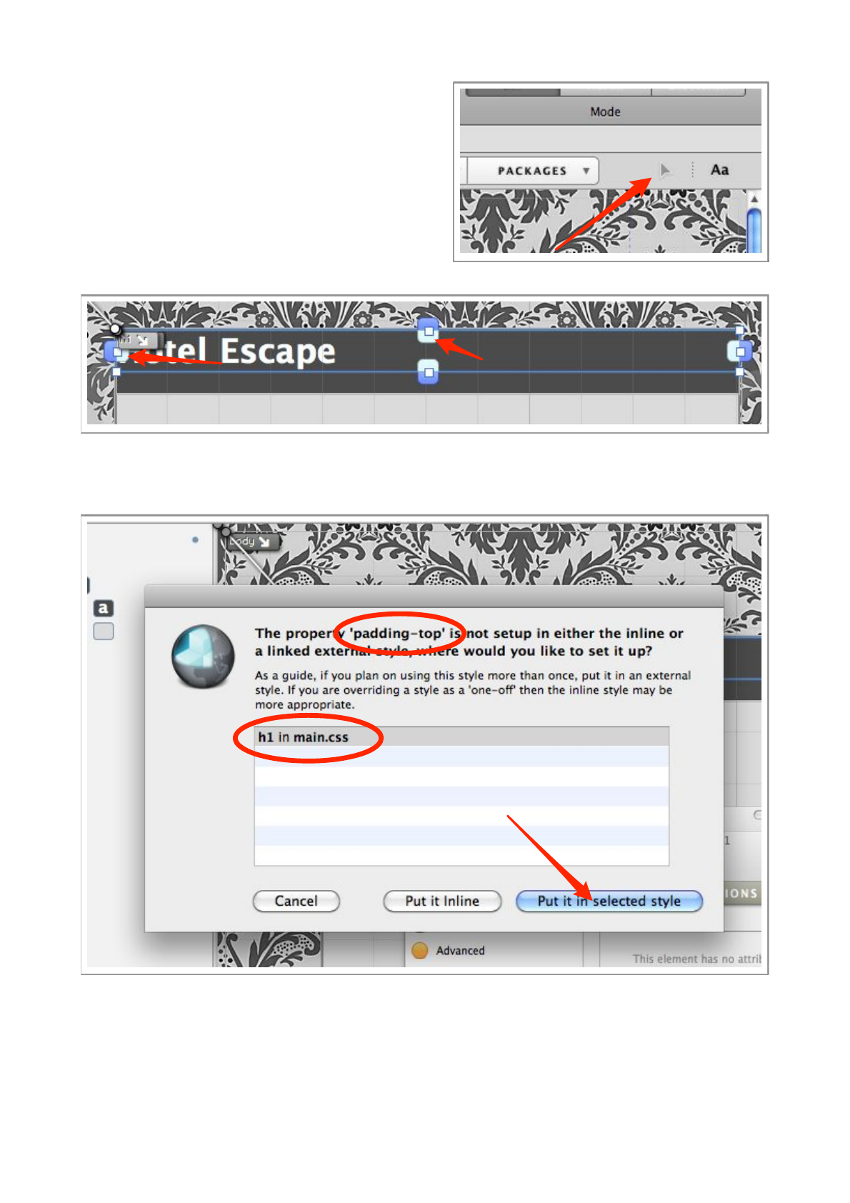 object by dragging the handles on the element. When the Padding option is turned off, you will