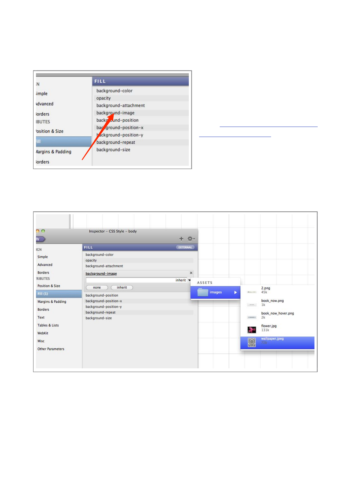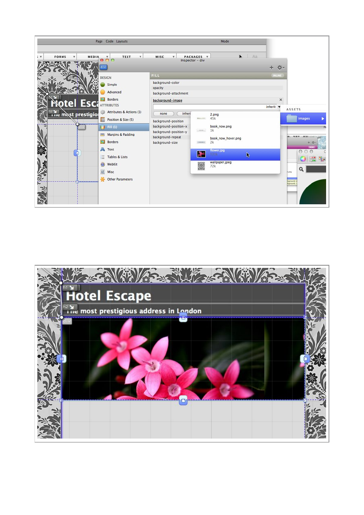 enable it’s background-image property in the Inspector.