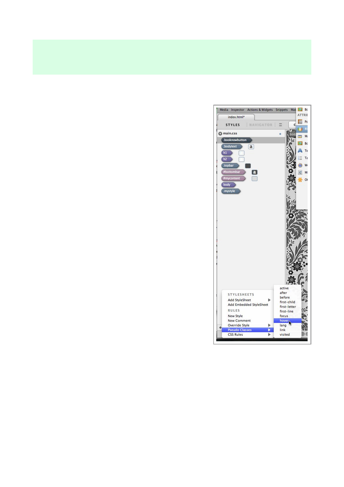 choose ‘hover’ from the Pseudo Classes submenu.
