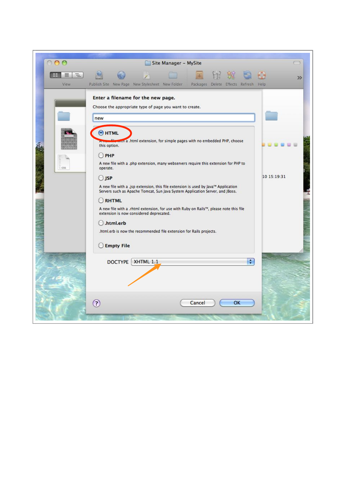 In the image, we have chosen XHTML 1.1, but ‘HTML 4.01 Transitional’ is probably the most