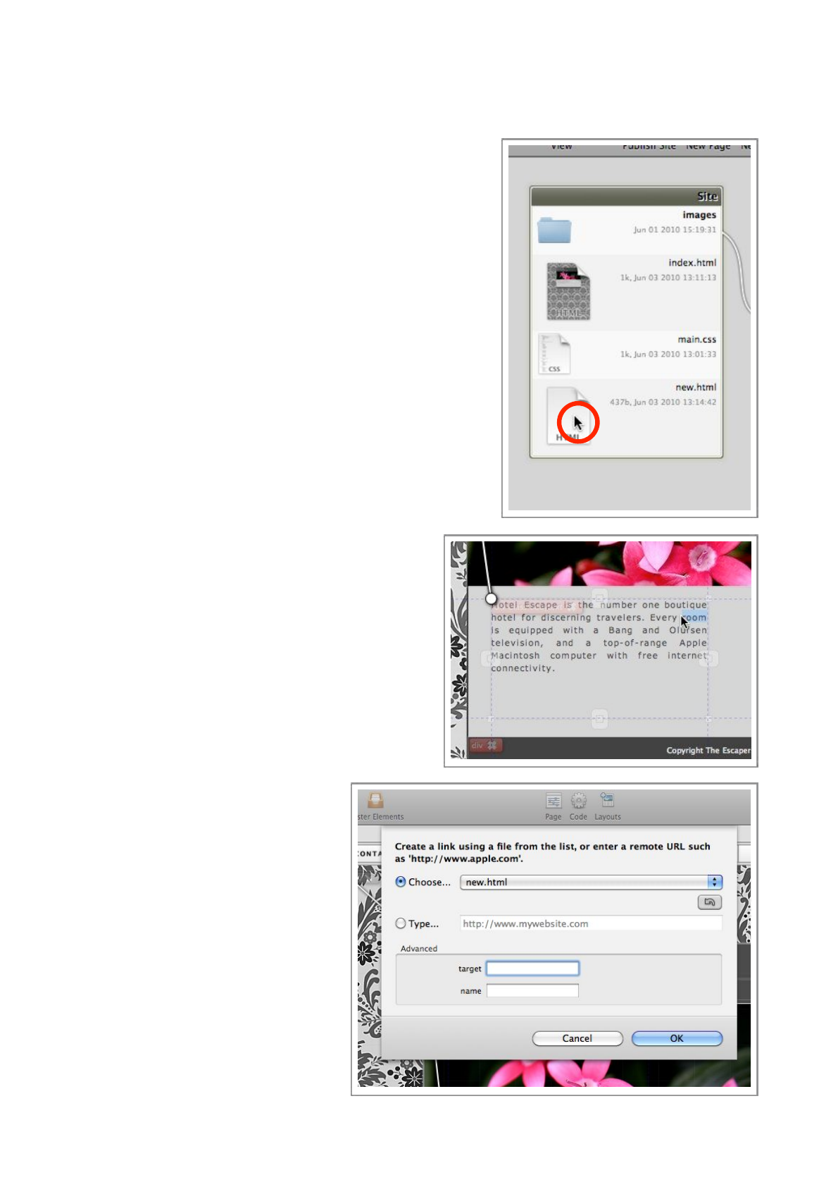 Double-click the ‘new.html’ file to open it in the Page