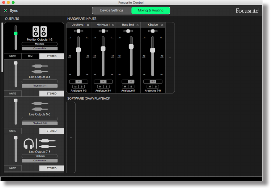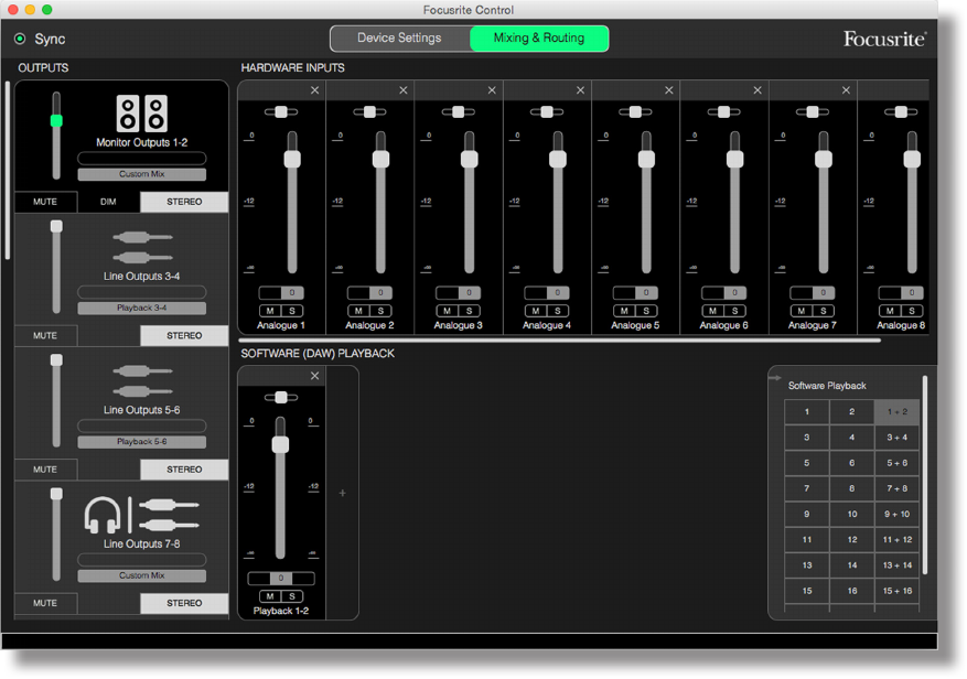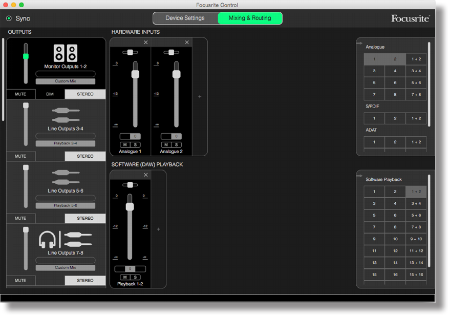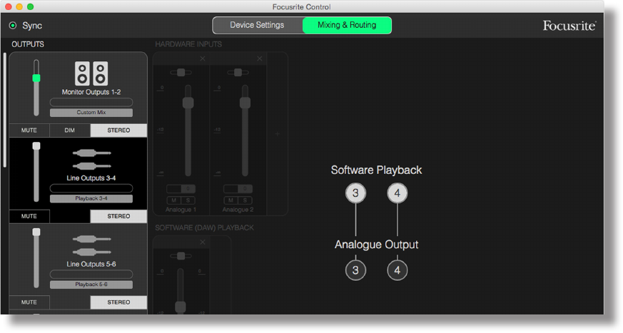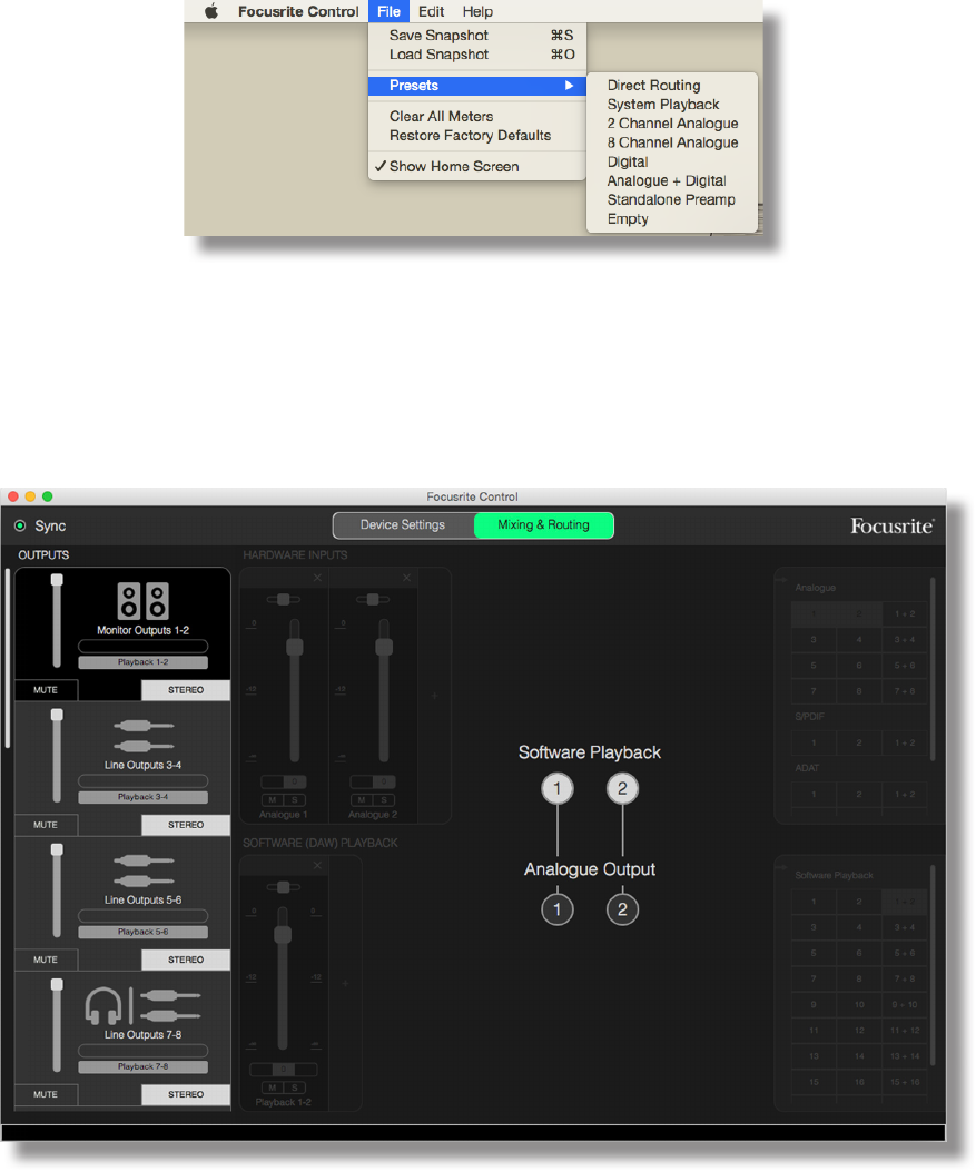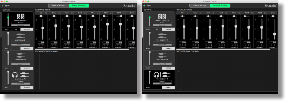 Once the Scarlett’s internal mixer has been configured by Focusrite Control, that configuration is