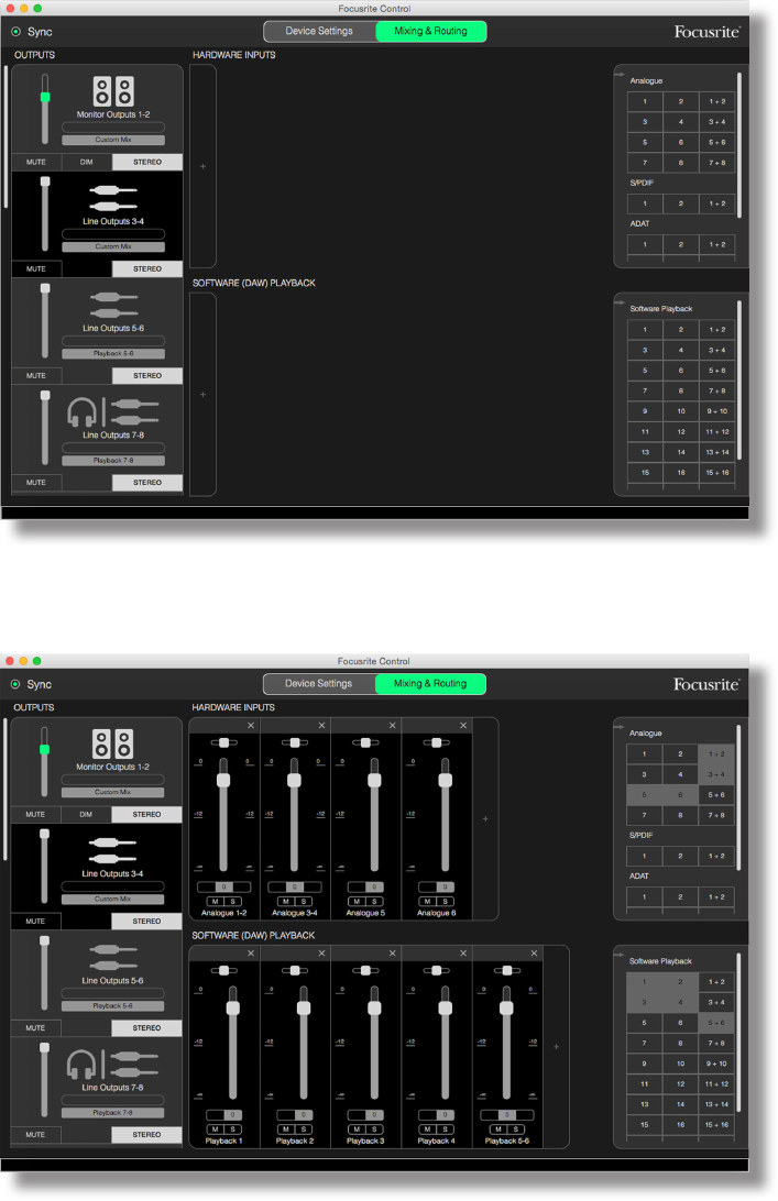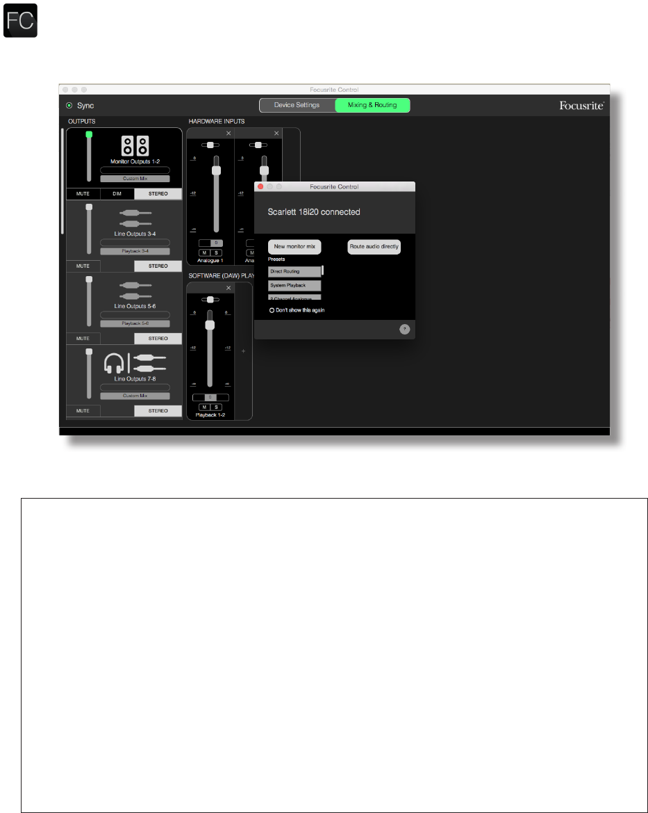 connected to the Scarlett’s various physical inputs. Before starting to use Focusrite Control, it is a