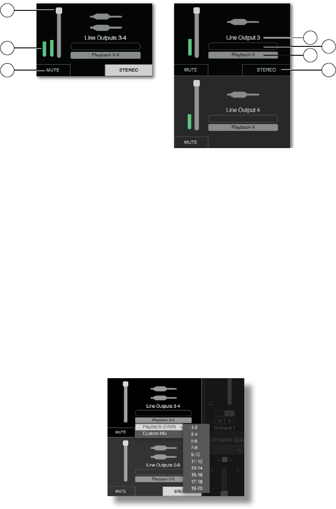 • 1-4 – Monitor Outputs 1 & 2 and Line Outputs 3 & 4