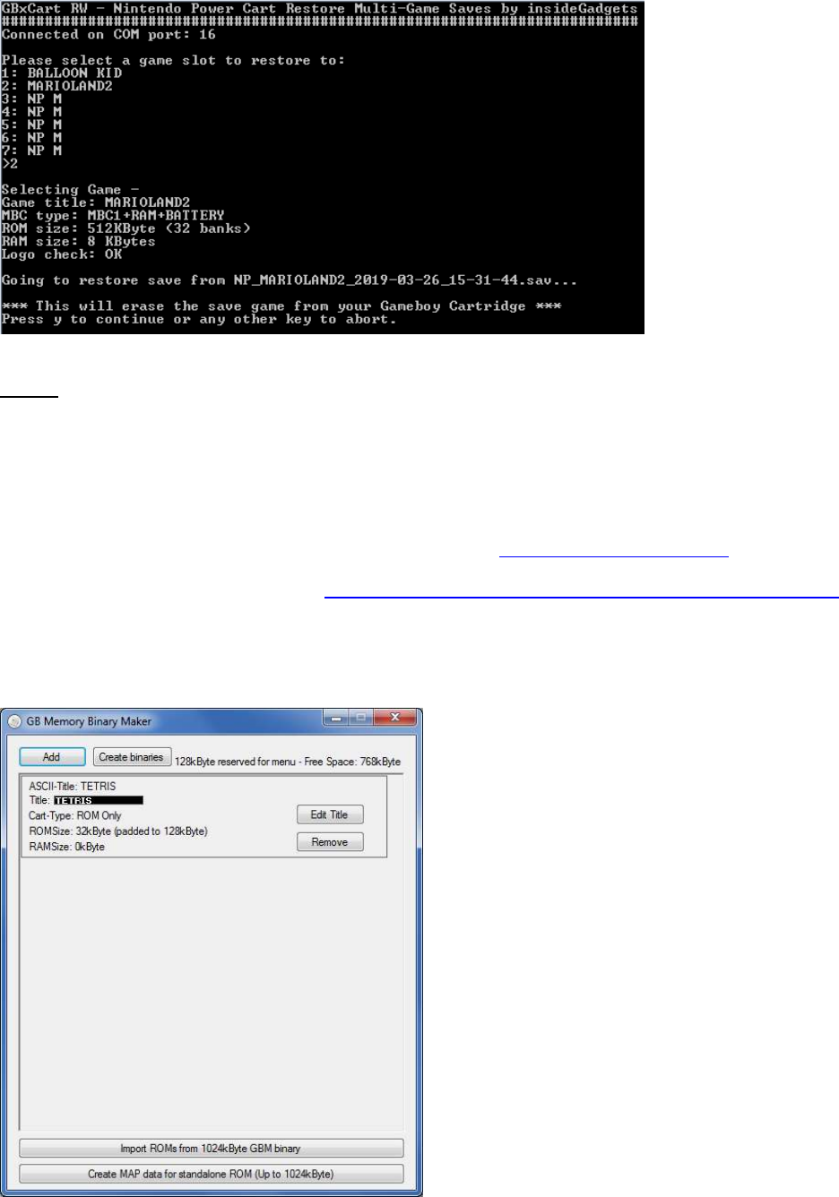 Nintendo Power Cart – Backup Full ROM/Hidden Sector, Backup Saves, Restore Saves, Flasher ................................... 16