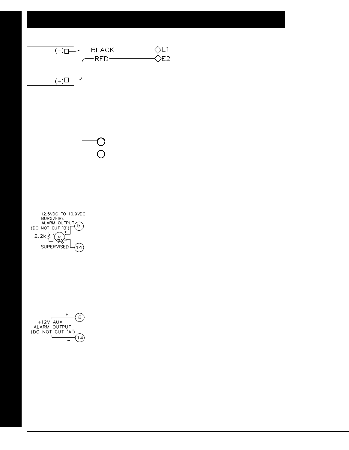 Page 14 in the SIREN/BELL BURG/FIRE ALARM OUTPUT section, the following statement added: "In NFPA Household Fire Installations, only a