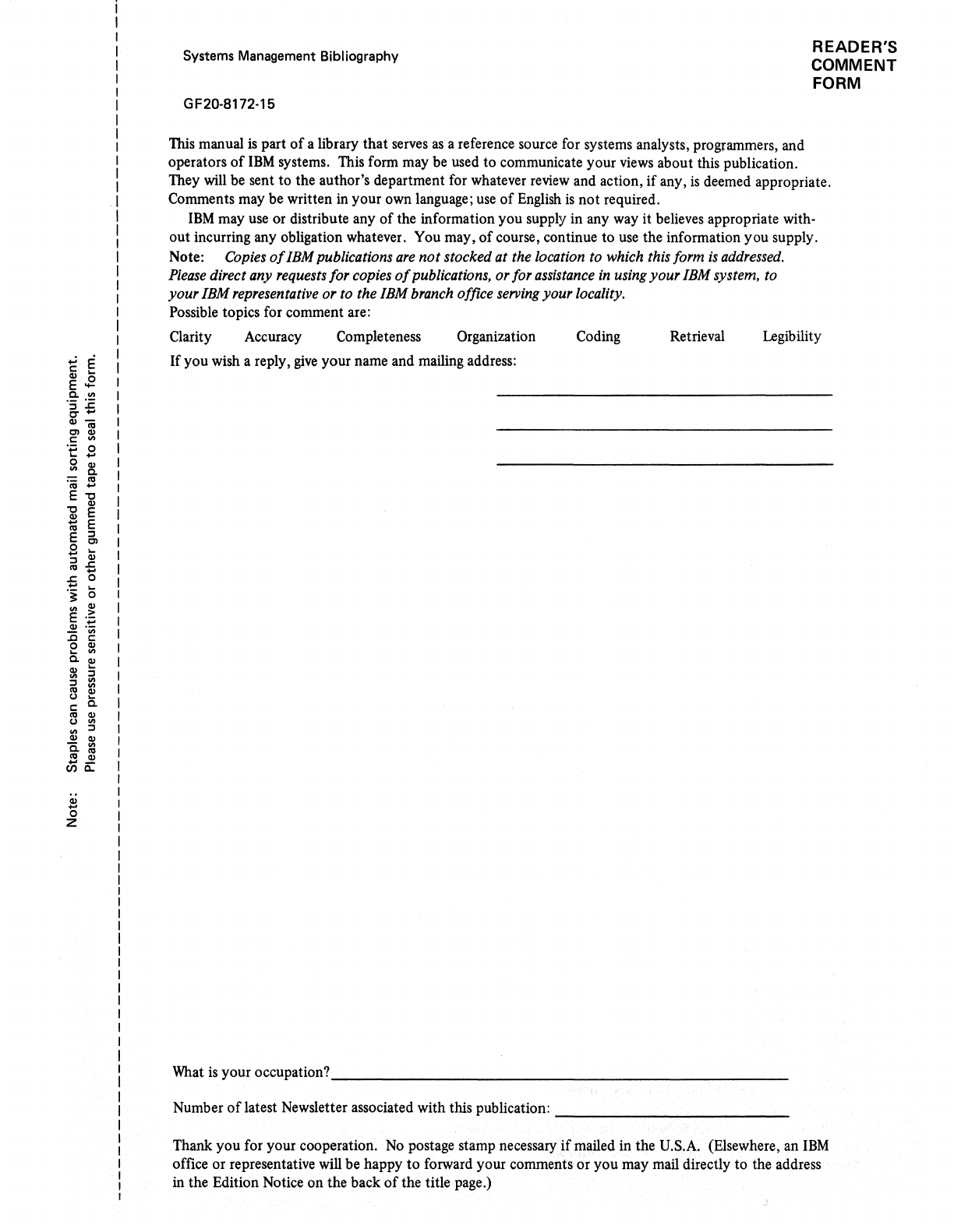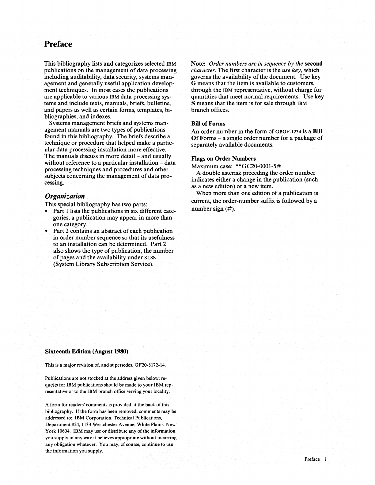 User Manual: GF20-8172-15_Systems_Management_Bibliography_Aug80