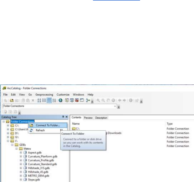 f. Under the Catalog Tree (window showing all folder connections), connect to