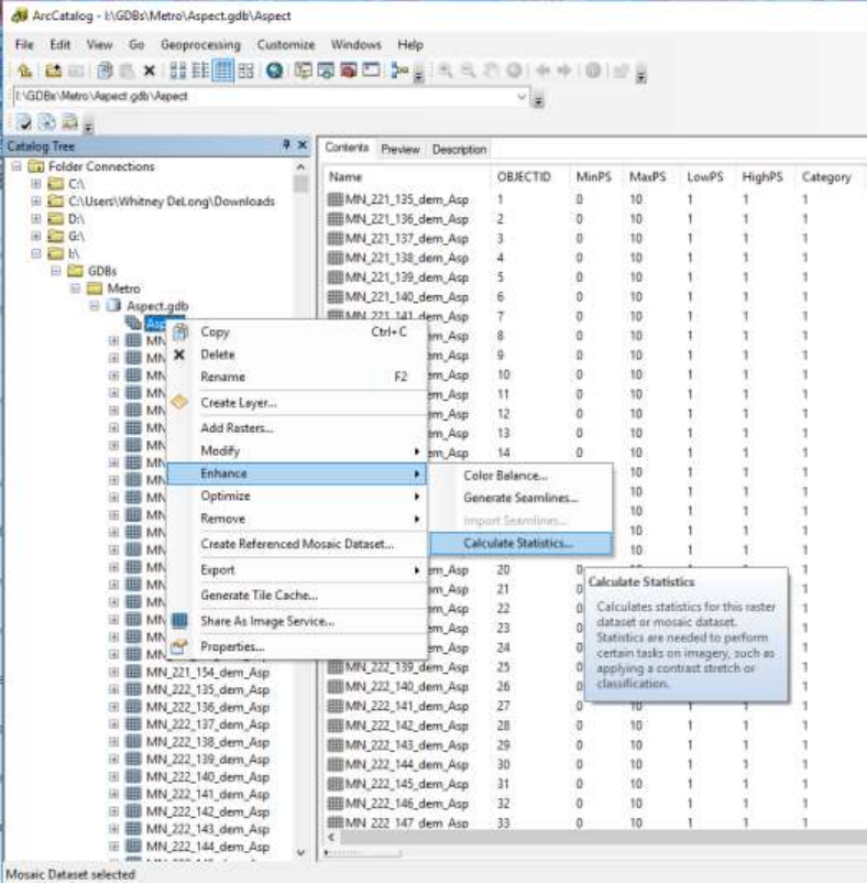 c. In the Catalog Tree expand GDB. Right click on the mosaic dataset within the
