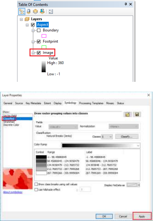 c. Once added, double click on Image under the mosaic dataset in TOC. This