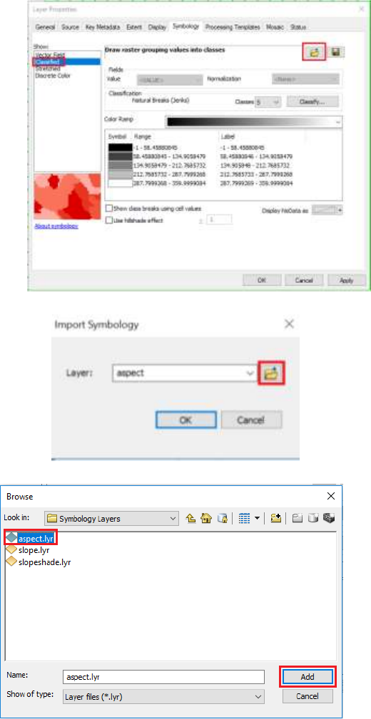 d. To import symbology layer, in the same Layer Properties window, click on folder