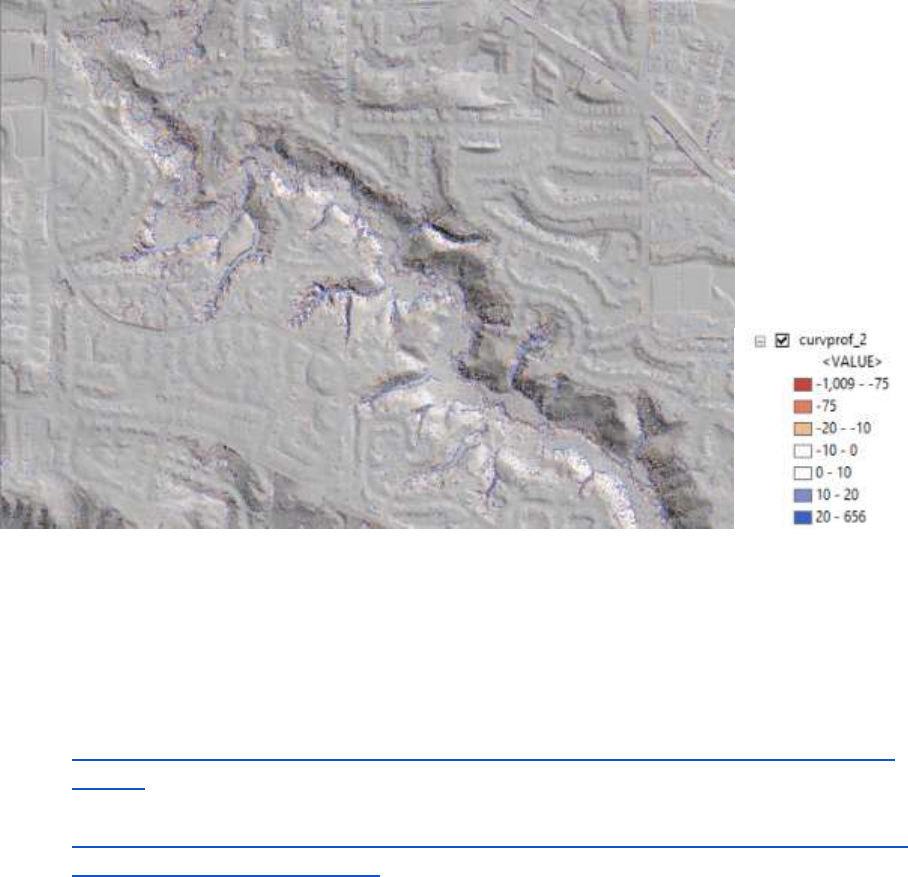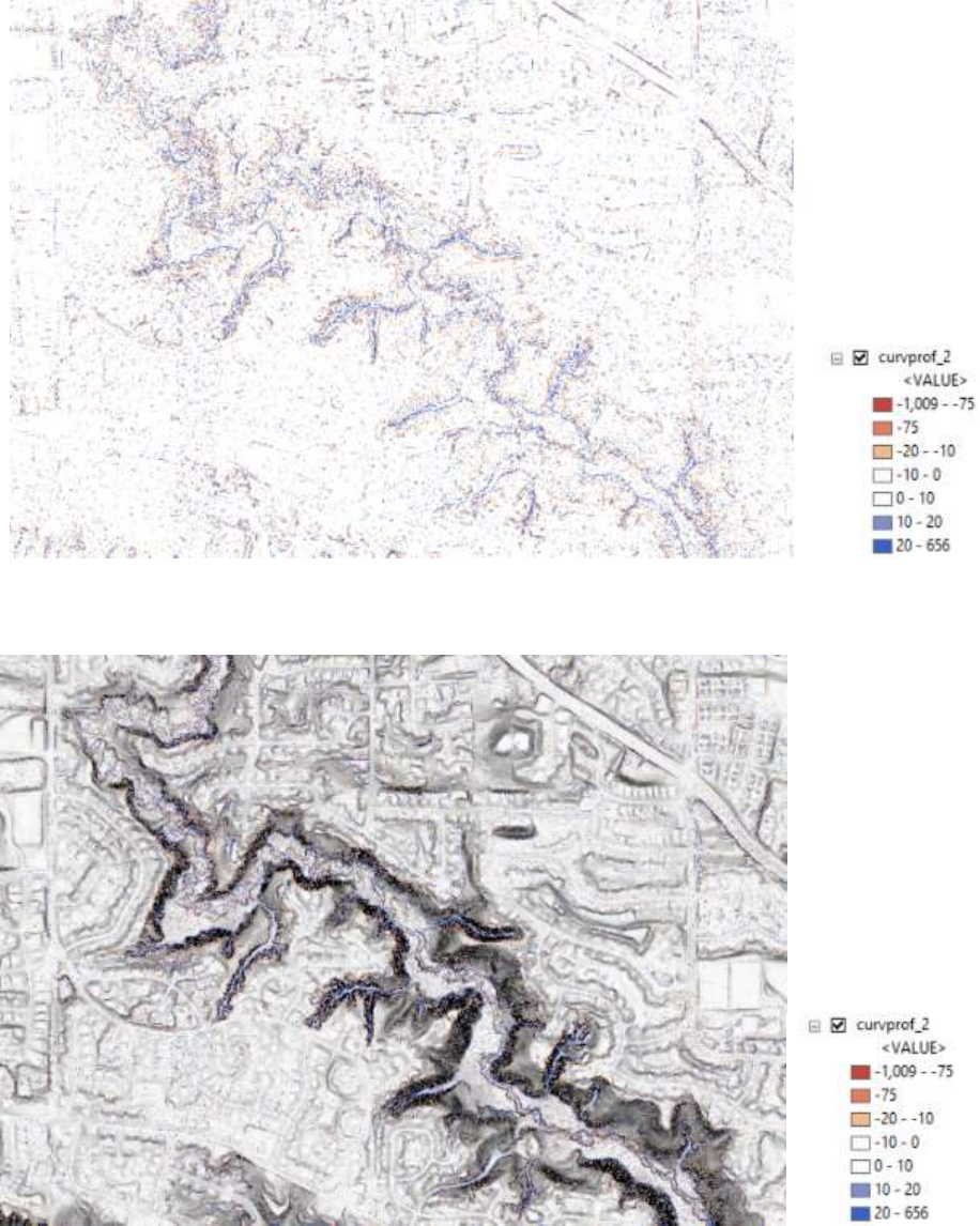 layer symbology, repeat step 3 using Profile_Curvature.lyr. Note that this is only a