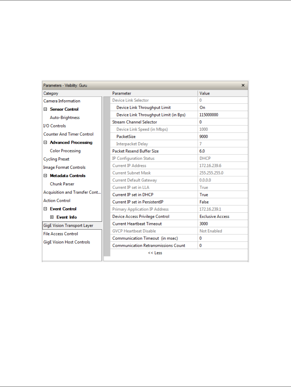 - GigE Vision Transport Layer Control Category