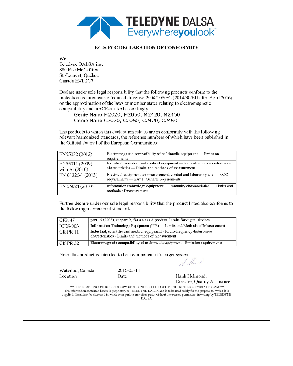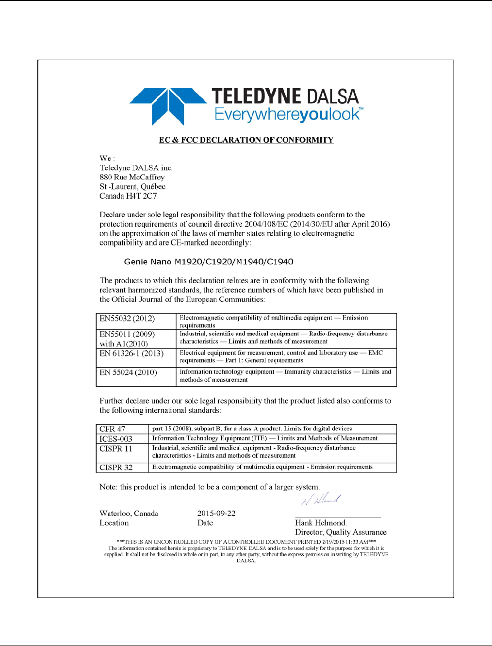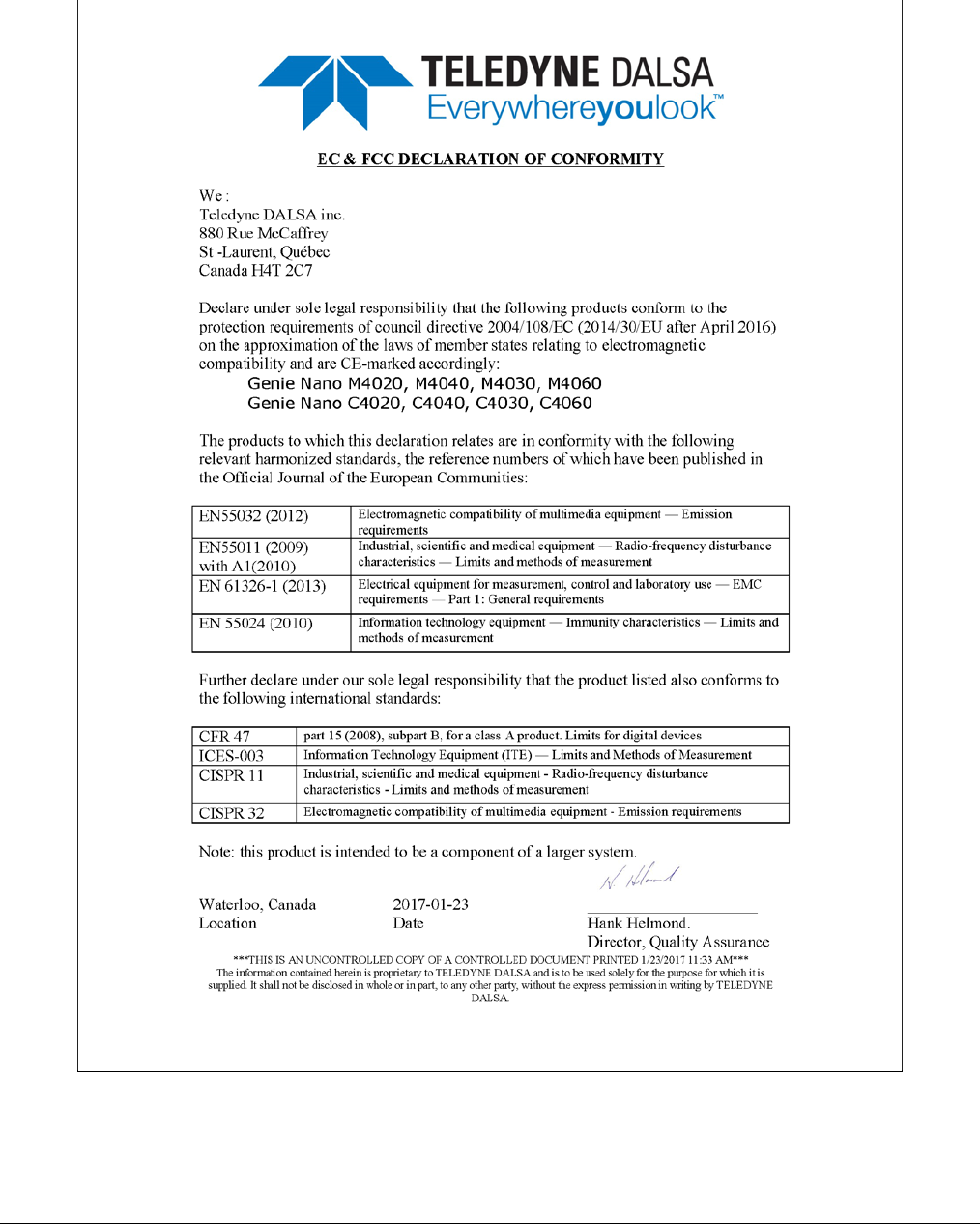 - EC & FCC Declarations of Conformity