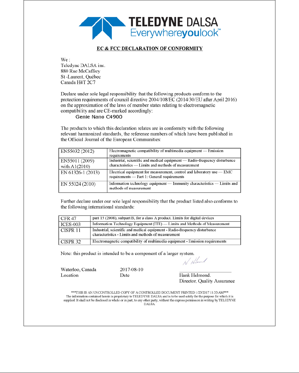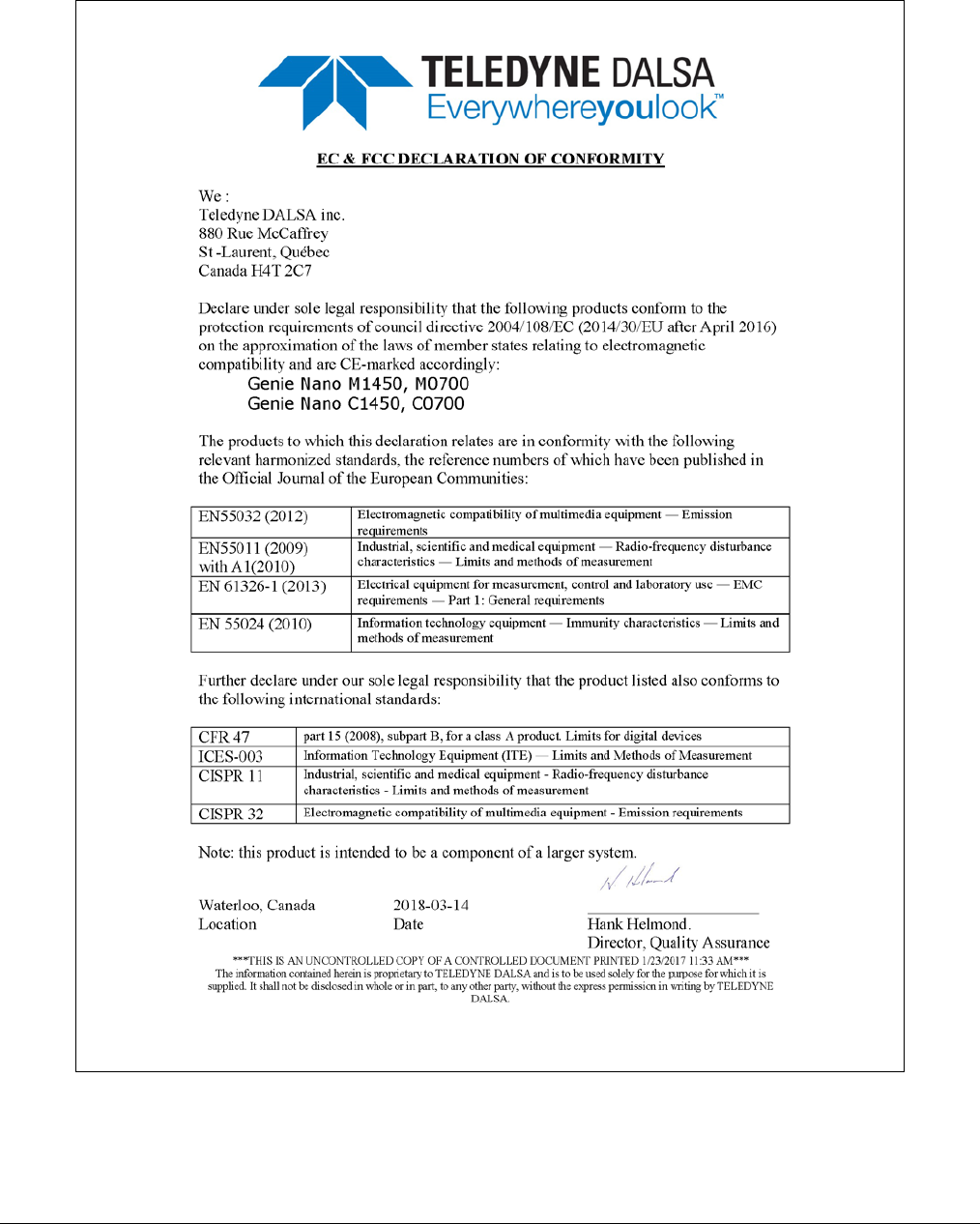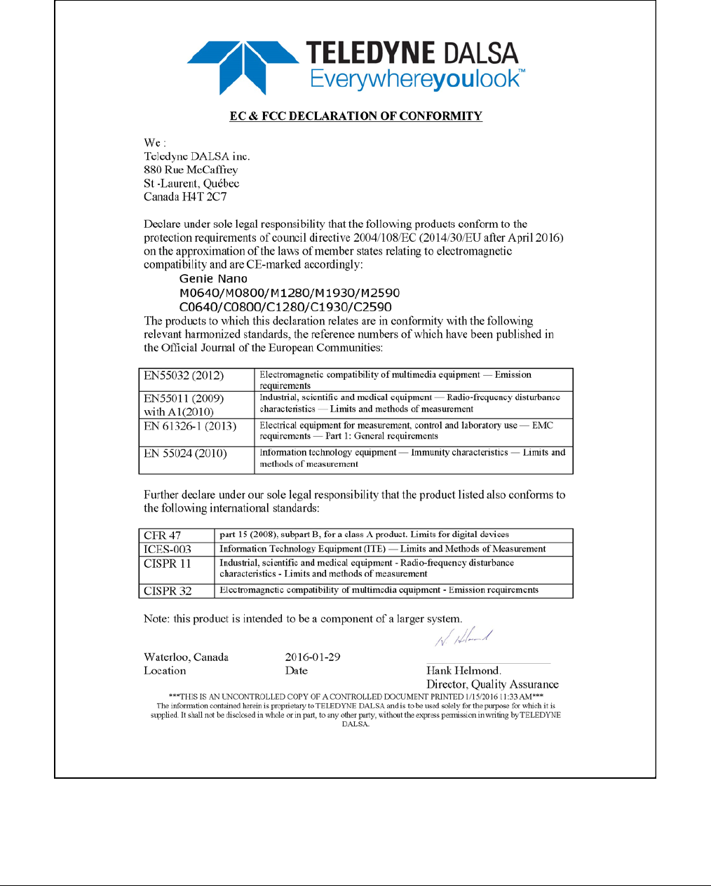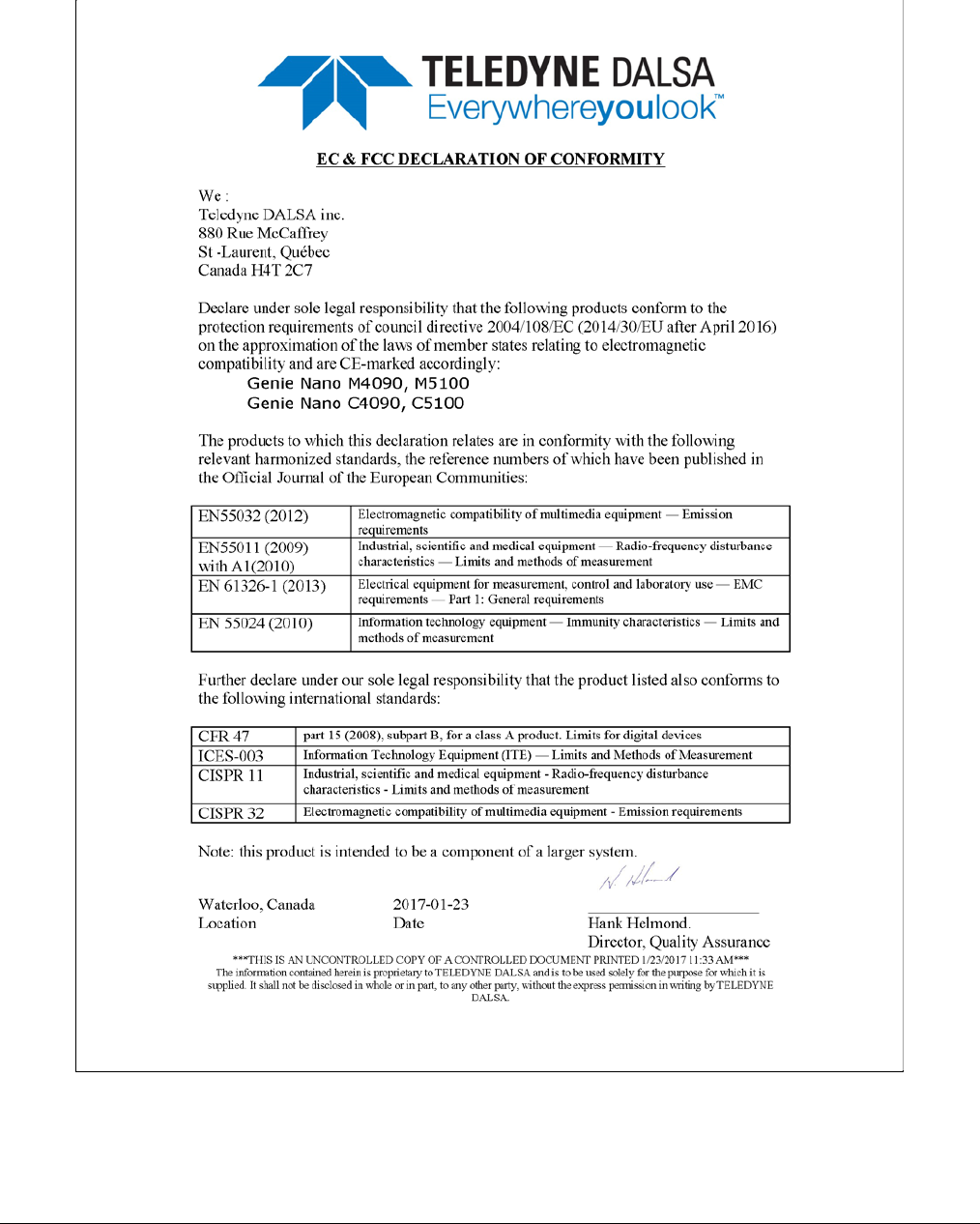 - EC & FCC Declarations of Conformity