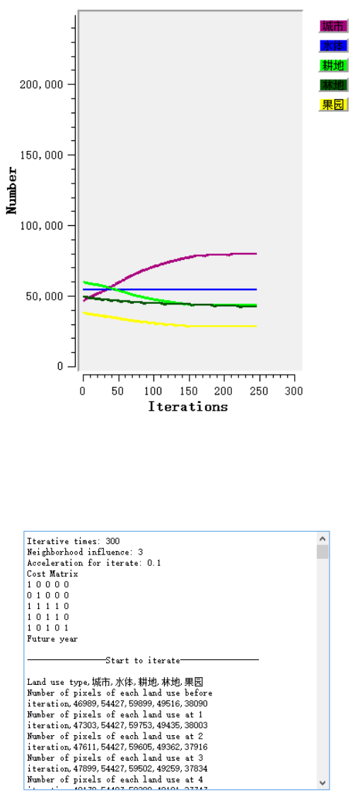 一轮迭代后各土地利用类型的像元数值,右侧显示面板将动态显示每一次迭代