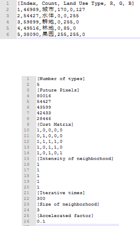 output.log:记录元胞自动机模拟的参数以及各类土地类型在每次迭代时的像