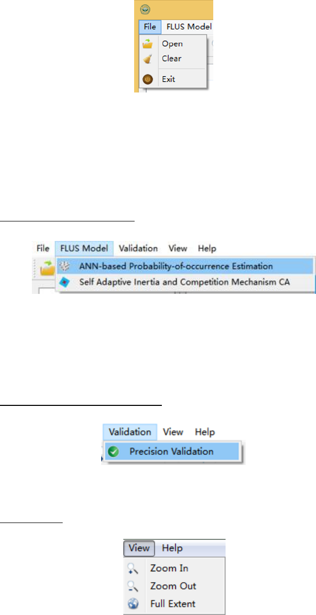 (3) Exit (退出): 退出 GeoSOS-FLUS 软件。