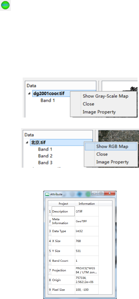 和Image Property (图像属性窗口)。当影像为多波段影像时,则显示 Show RGB