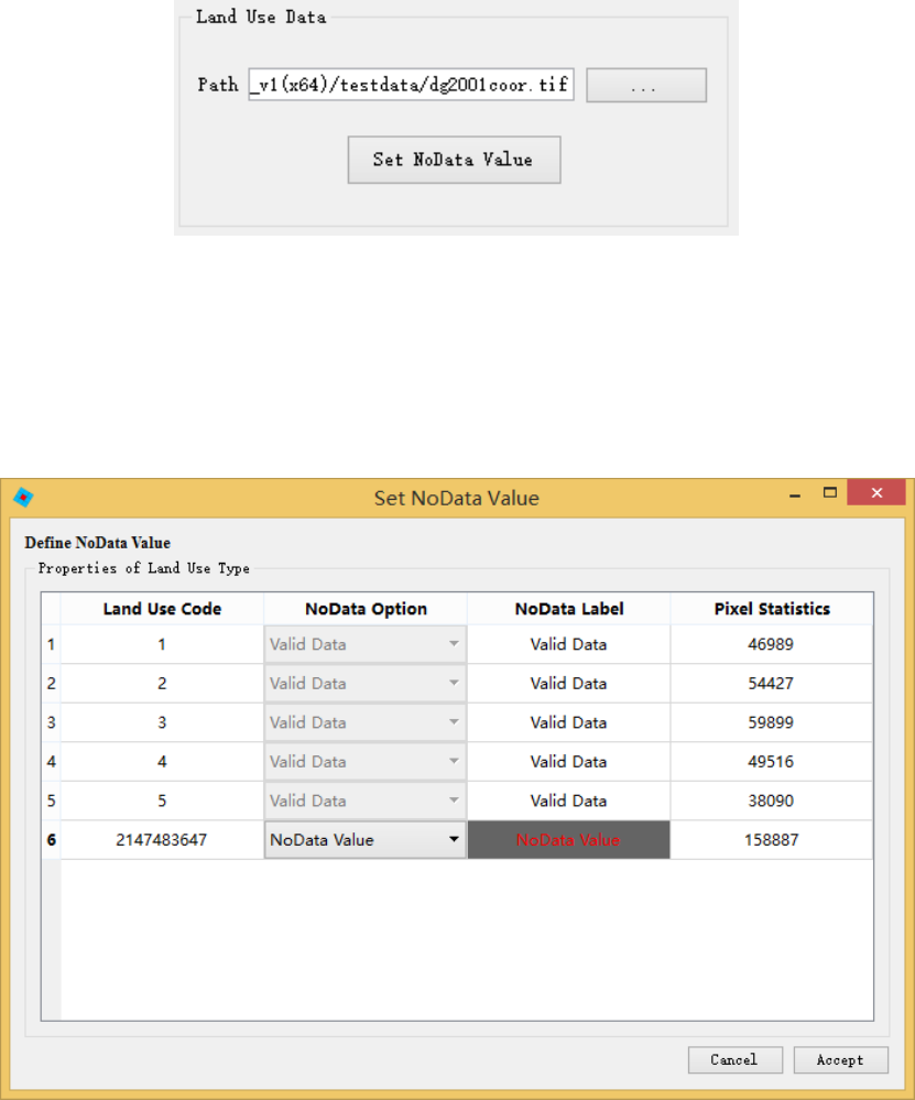 土地利用数据中 5种有效土地类型的编号分别为:1,2,3,4,5。NoData Value