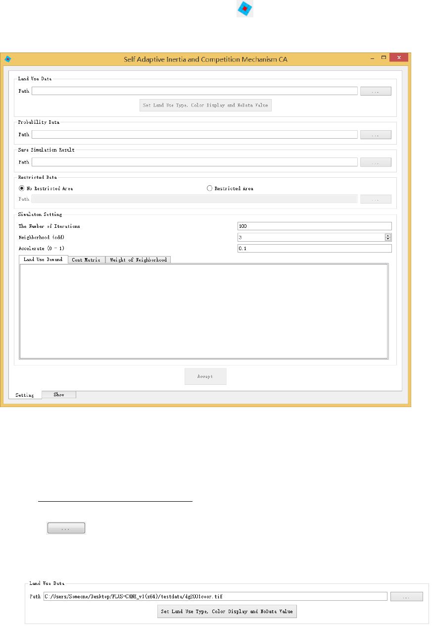 完成迭代模拟参数的设置后,在窗口左下角选择 Show 页面,进行土地利用