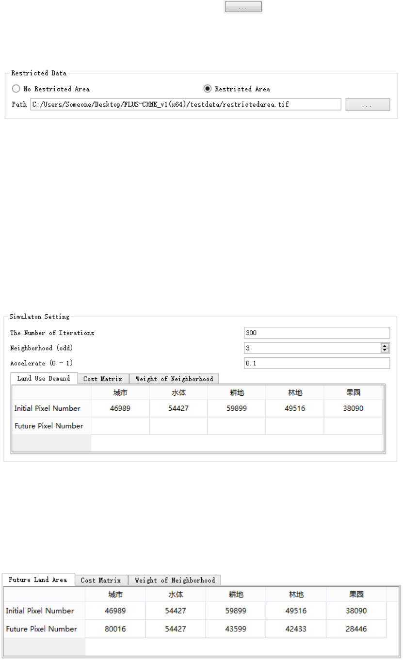 者需要在第三行 Future Pixel Number 输入各土地利用类型变化数量的目标。
