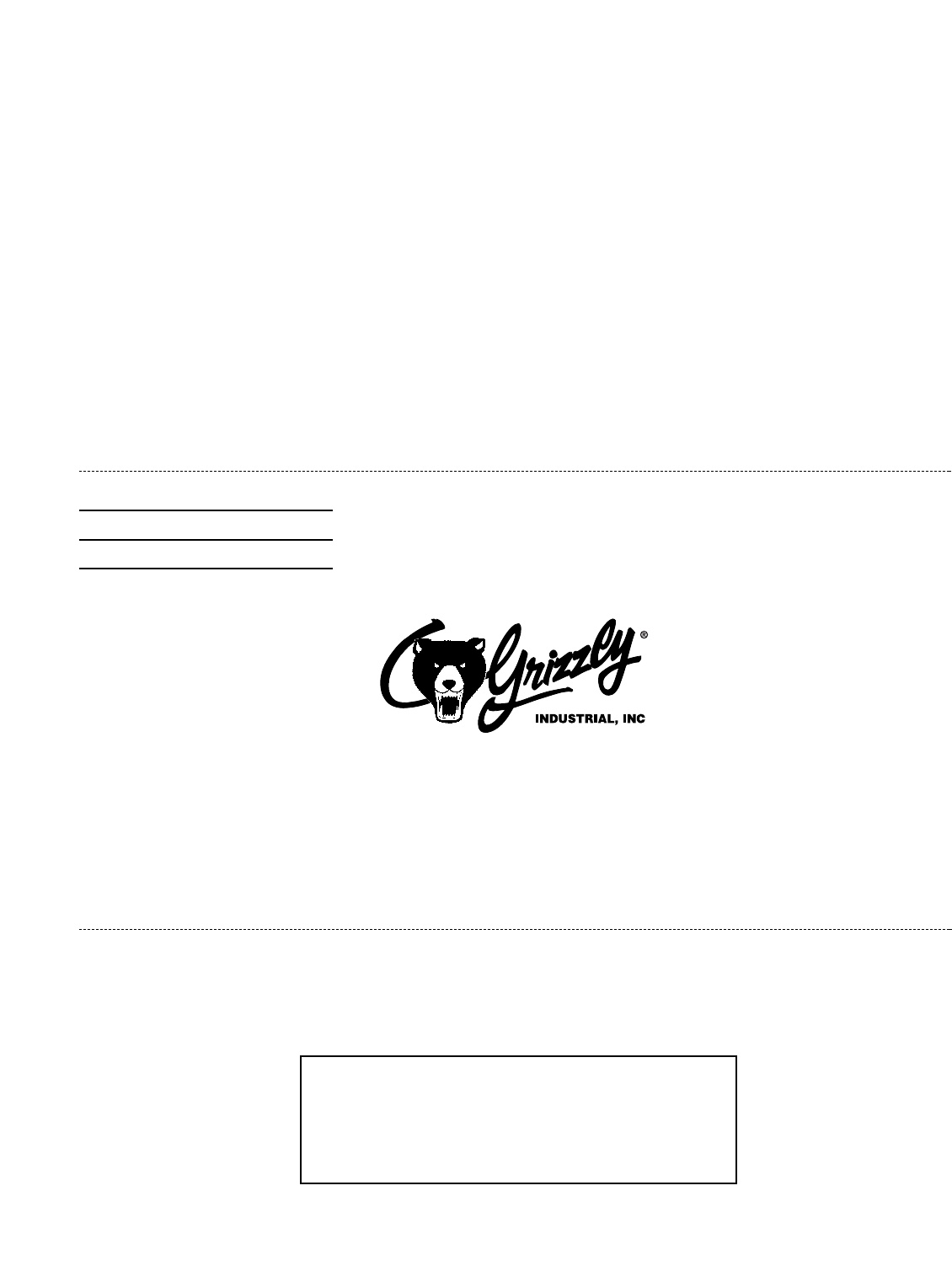 OR FORM WITHOUT THE WRITTEN APPROVAL OF GRIZZLY IMPORTS, INC.