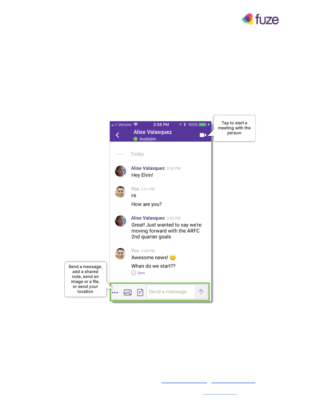you’re using Fuze Desktop, Fuze Web, or Fuze Mobile, you’ll likely find it easy to chat or meet