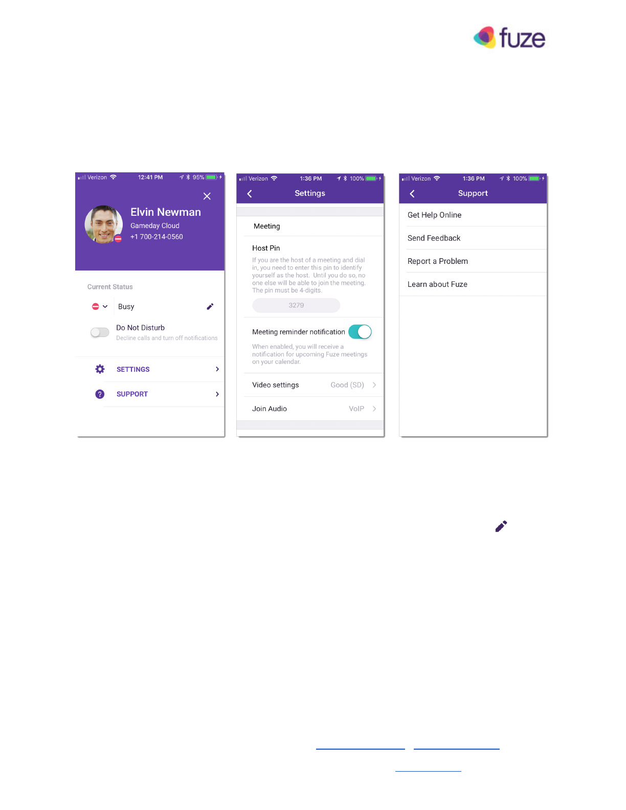 Tap Support to send feedback, report a problem, and learn more about Fuze.