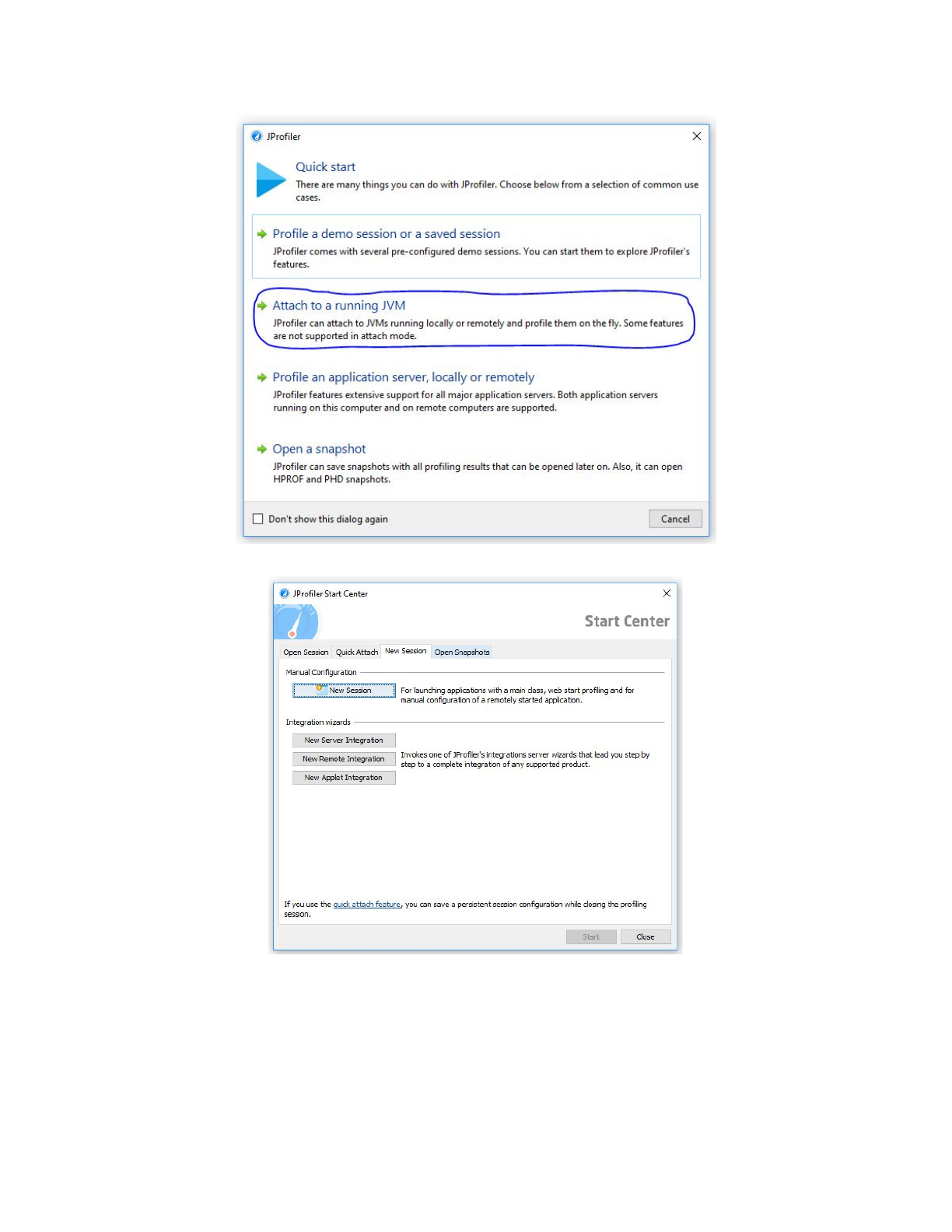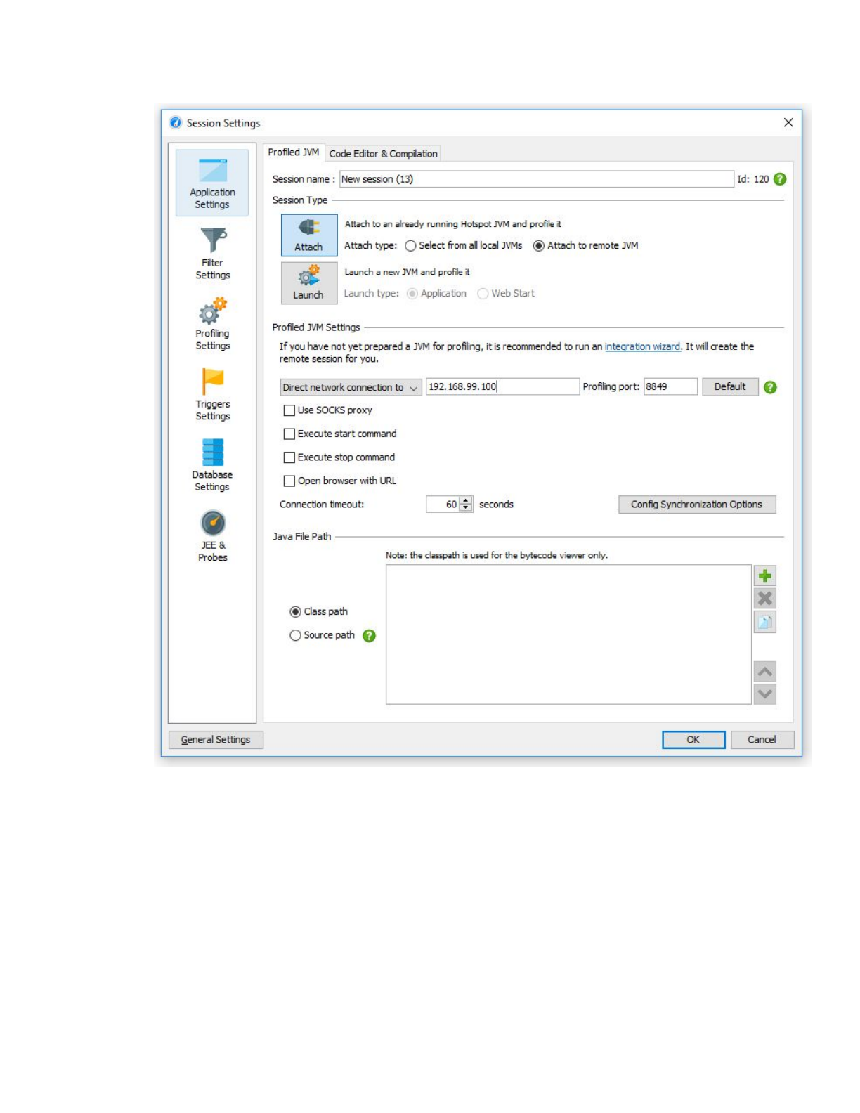 6. Exécuter JProfiler sur l’hôte et suivez les étapes suivantes: