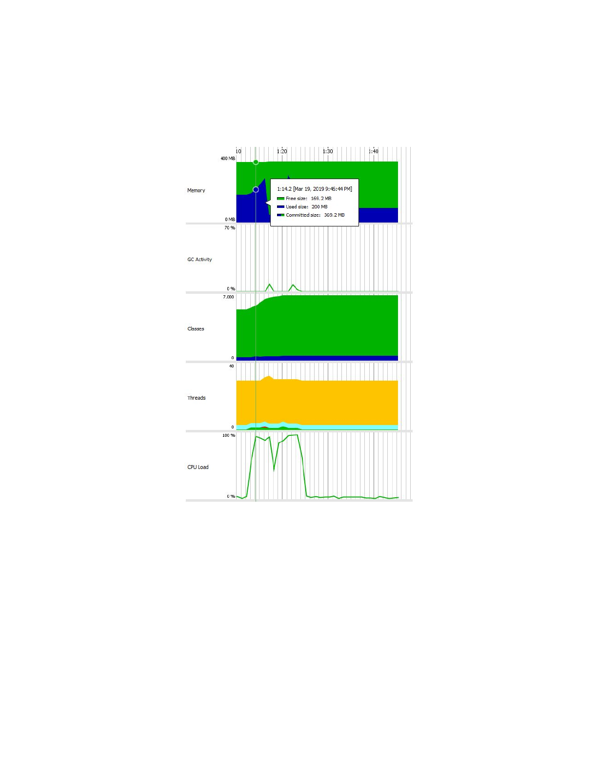 se stabilisent autours de 100% avec des fluctuations de 10 à 20%. La mémoire utilisée pour