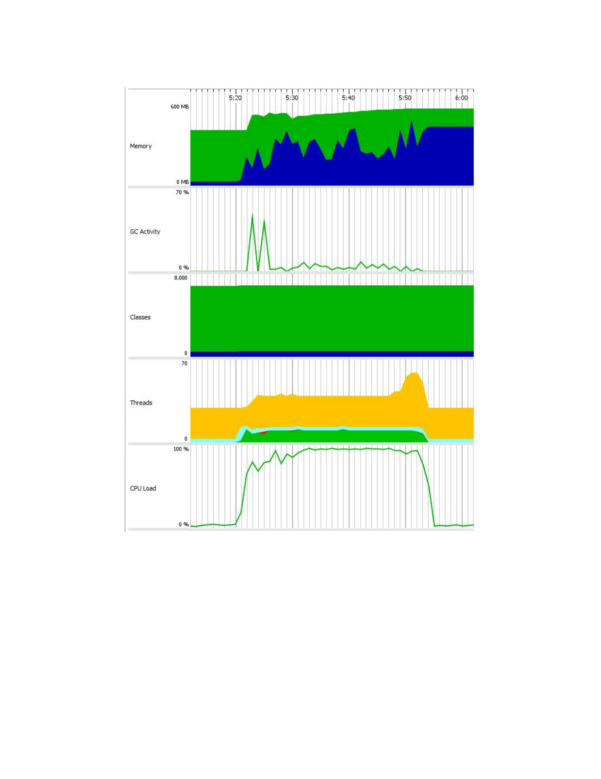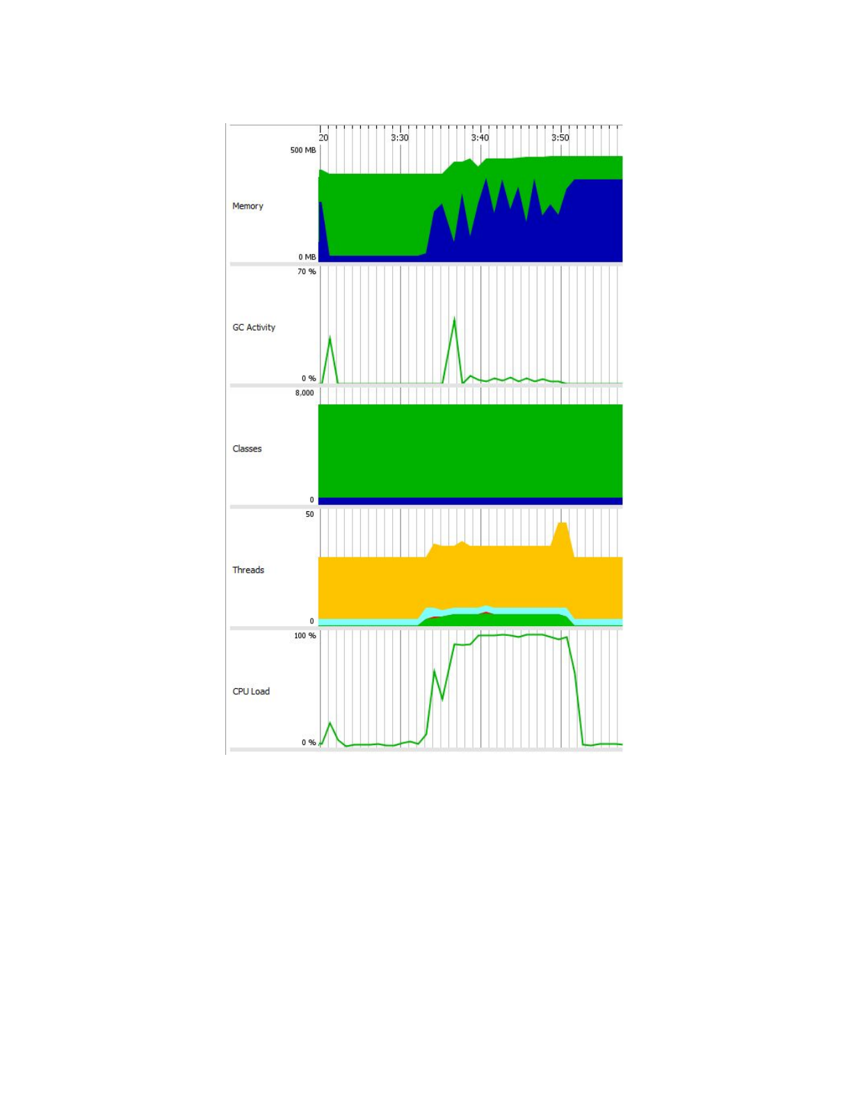 le % du CPU excède bien 200% et la mémoire utilisé maximal est plus grand que 2.0G. Mais