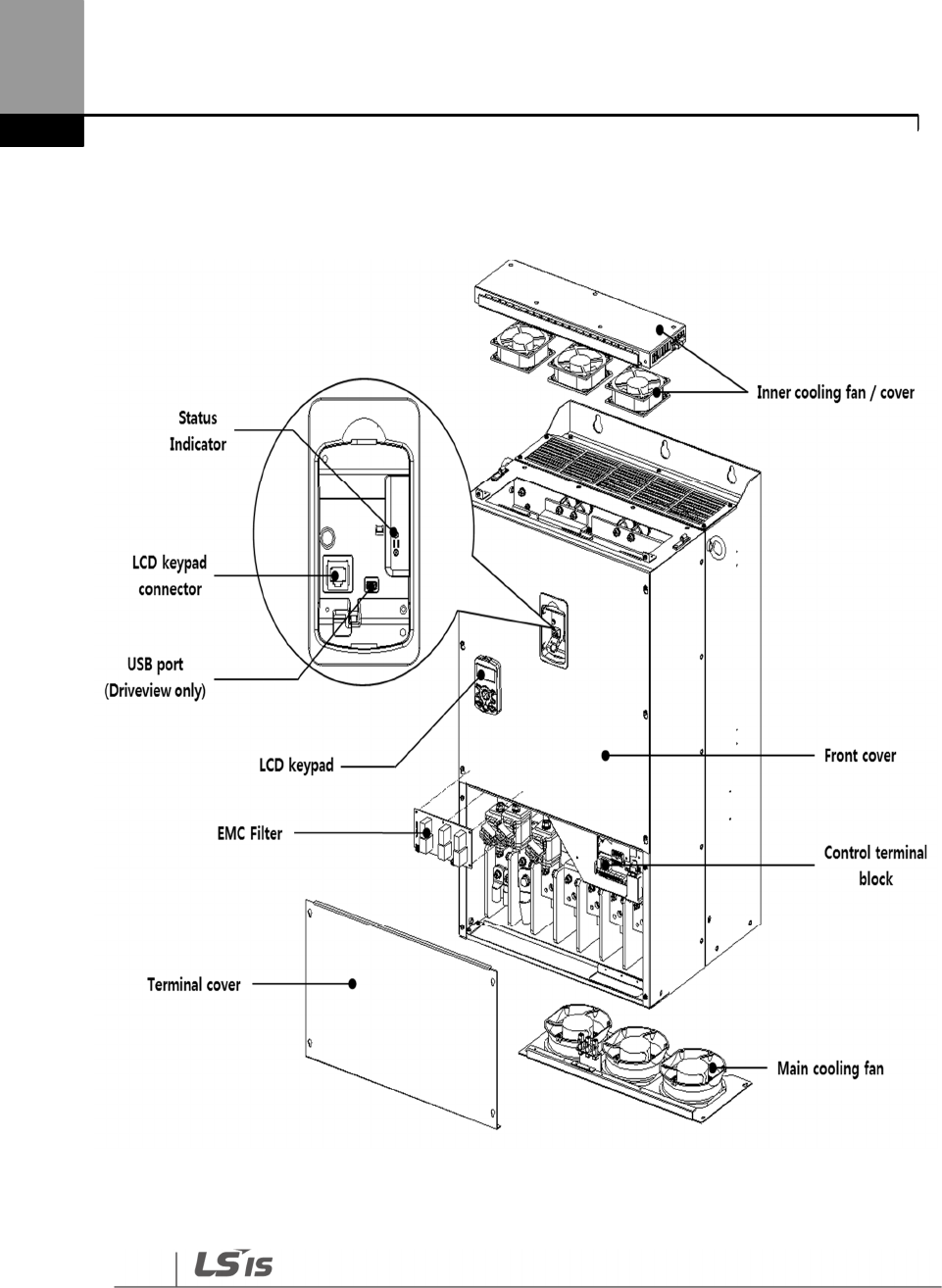 inverter while the cover is open. Exposure of high voltage terminals or charging area to the