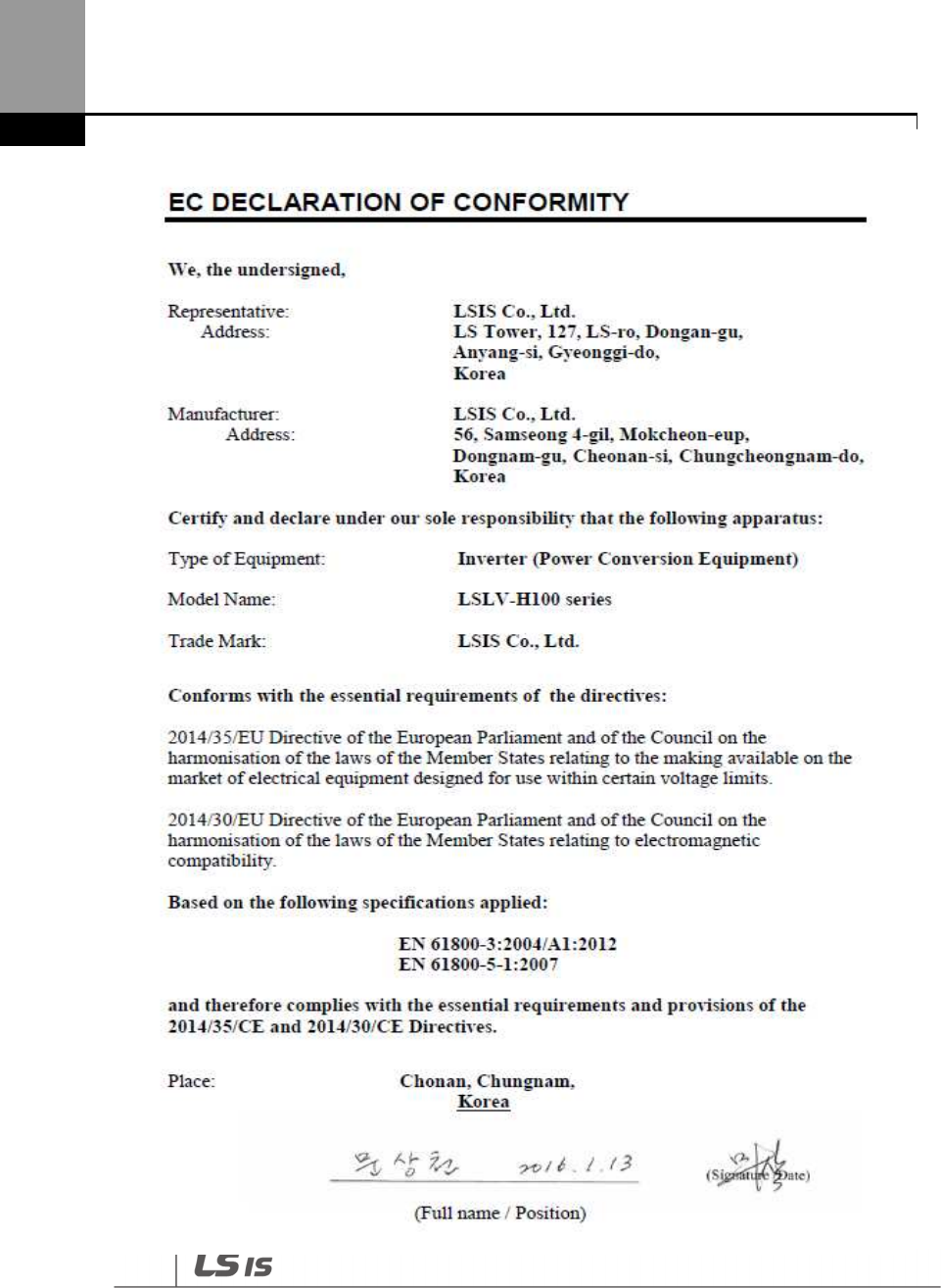 IEC 60439-1 as 100 kA. LSLV-H100 is suitable for use in a circuit capable of delivering not more