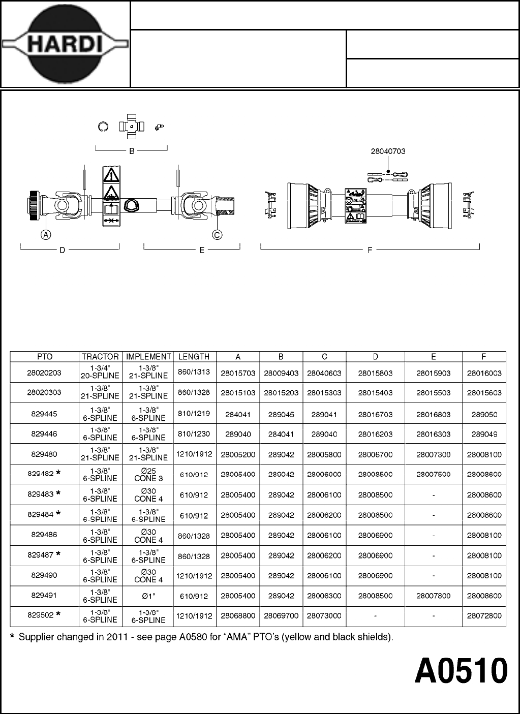 A0580-HIN 01:01:16 PTO SHAFTS - AMA DIAPHRAGM