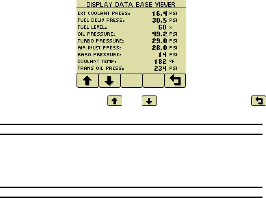 parameters are displayed on gauge pages or the single analog gauge or the Data Base Viewer. The