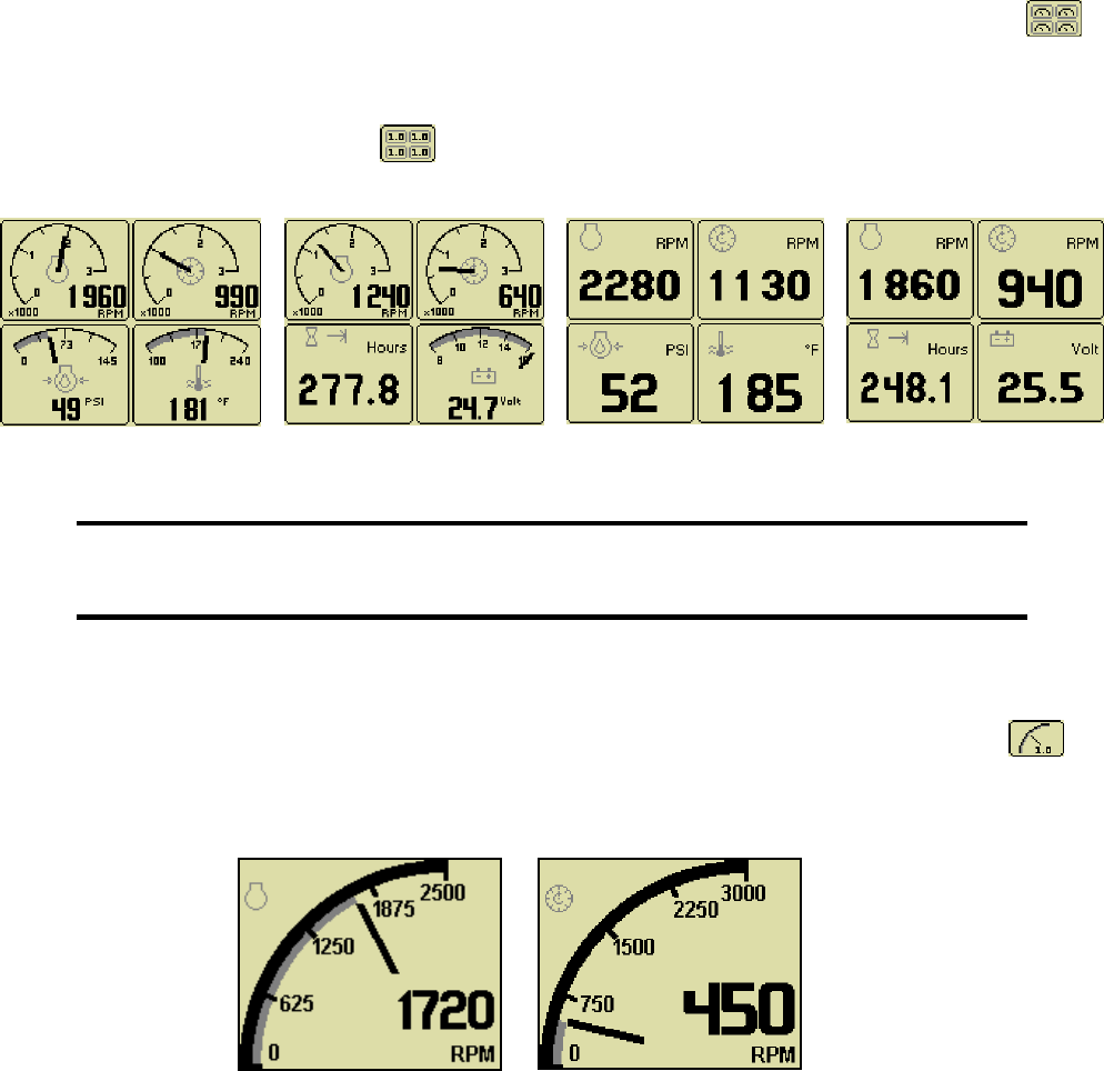 electronically governed diesel engines. Graphical gauge pages or a single large analog gauge are