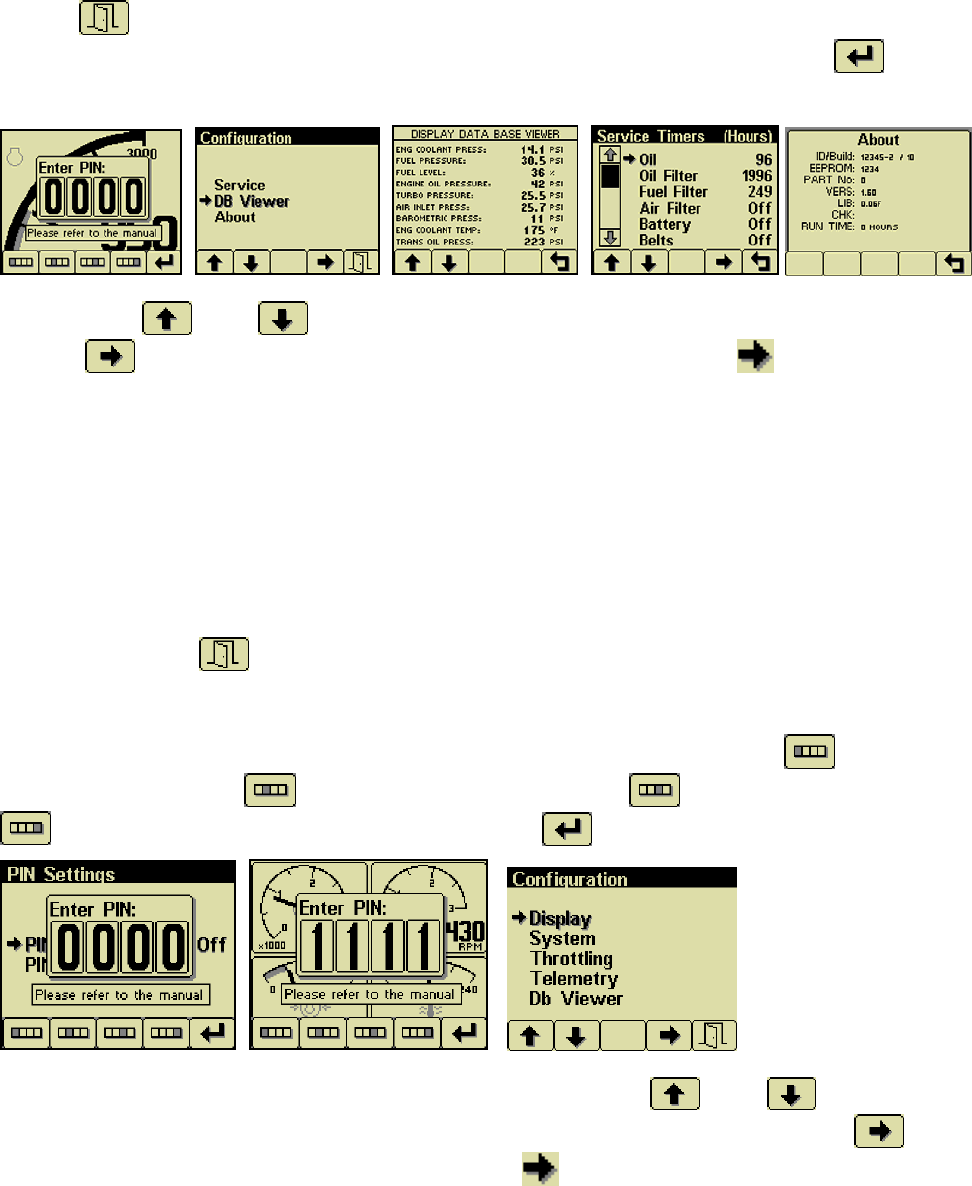 complete database can be accessed on the display via the Configuration menu DB Viewer .