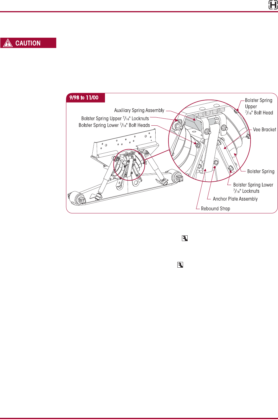 Damaged bolster spring assembly Replace bolster spring assembly.