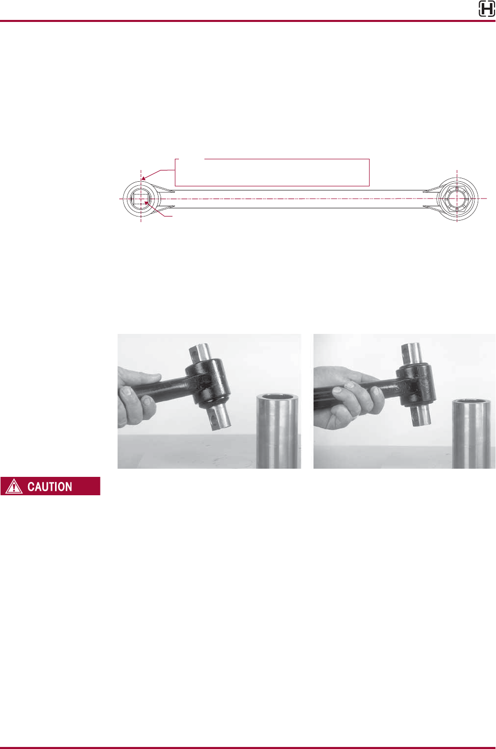4. Push directly on the straddle mount bar pin, or the tapered stud. The bushing must be cen-
