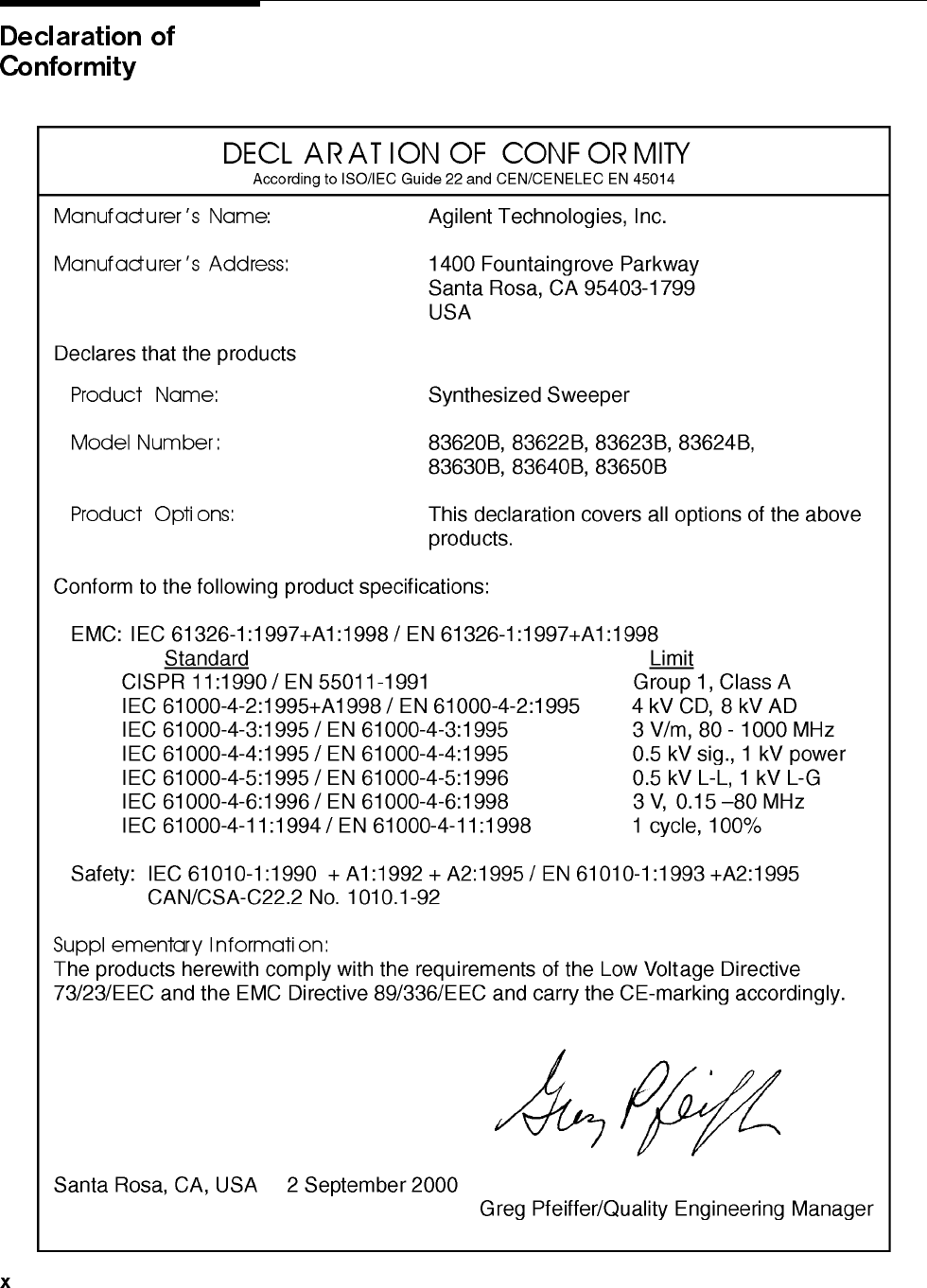 Agilent Technologies 83620B/22B/23B/24B/30B